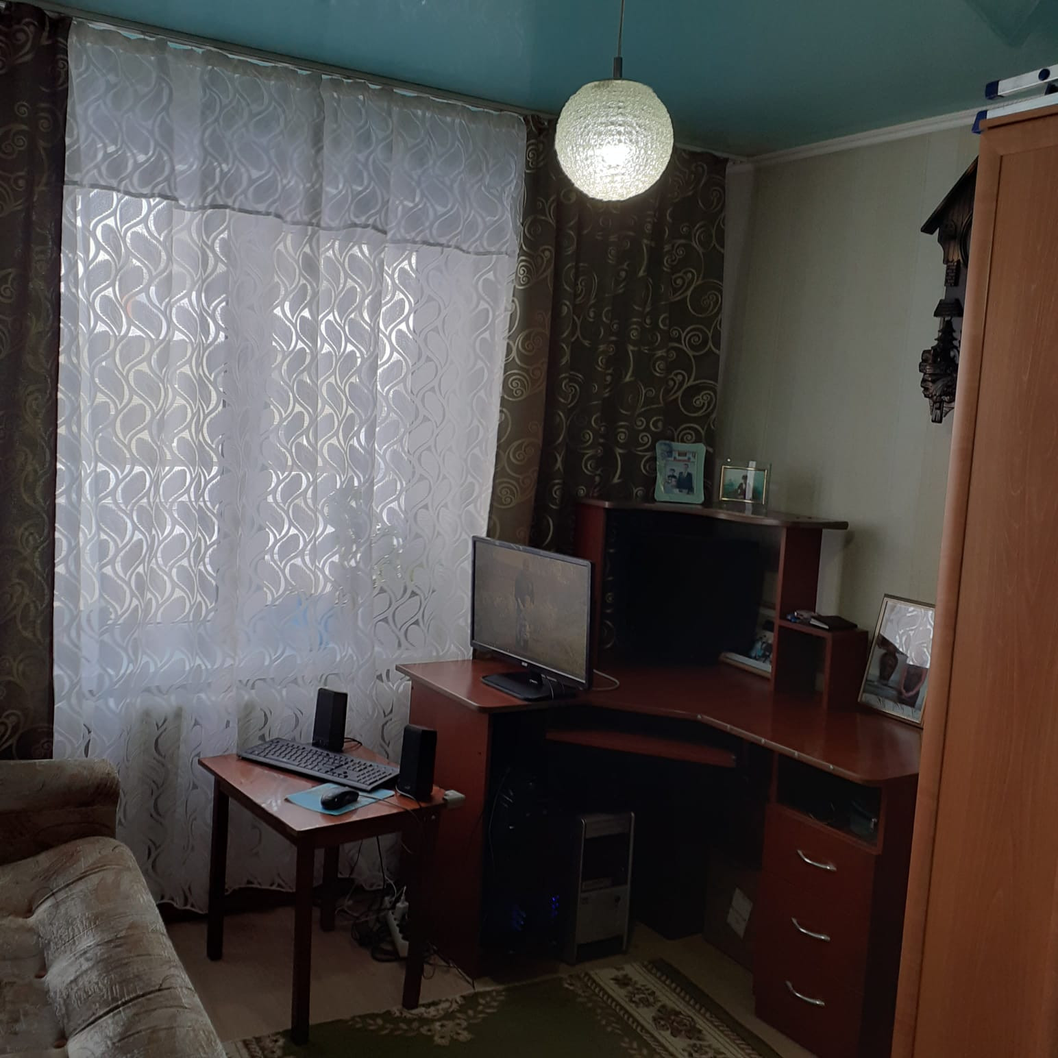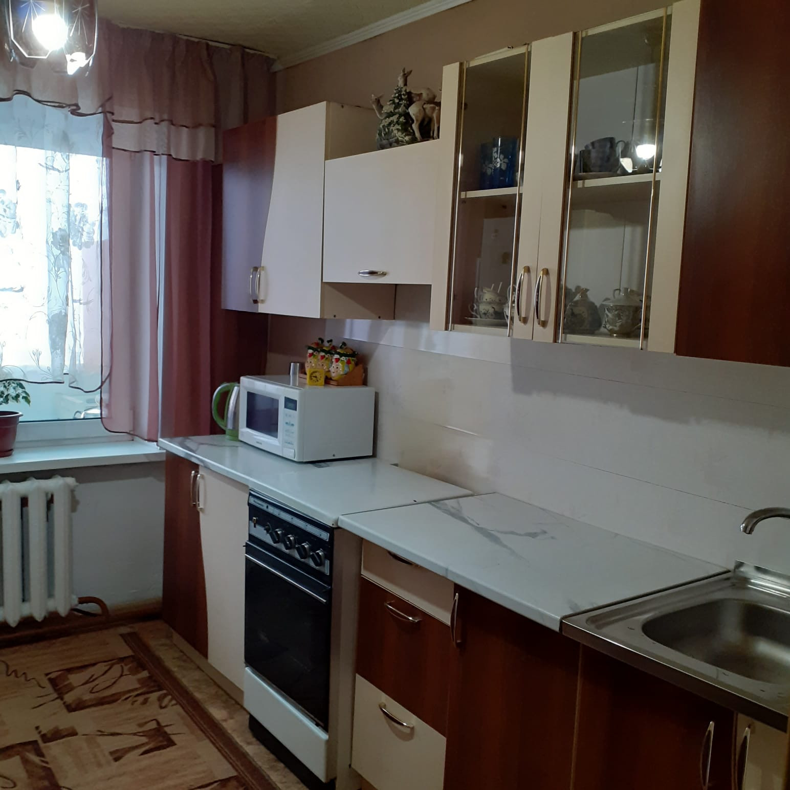 В квартире остаются водонагреватели, в также, по желанию покупателей, угловой диван, стенка в зале и кухонный гарнитур.