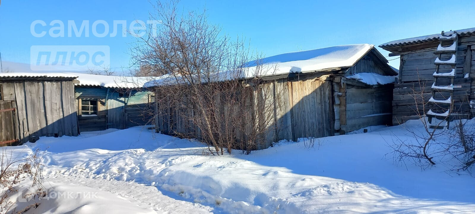 Дом построен из бруса, во дворе имеются постройки: баня на дровах, сеновал, летняя кухня, гараж.
