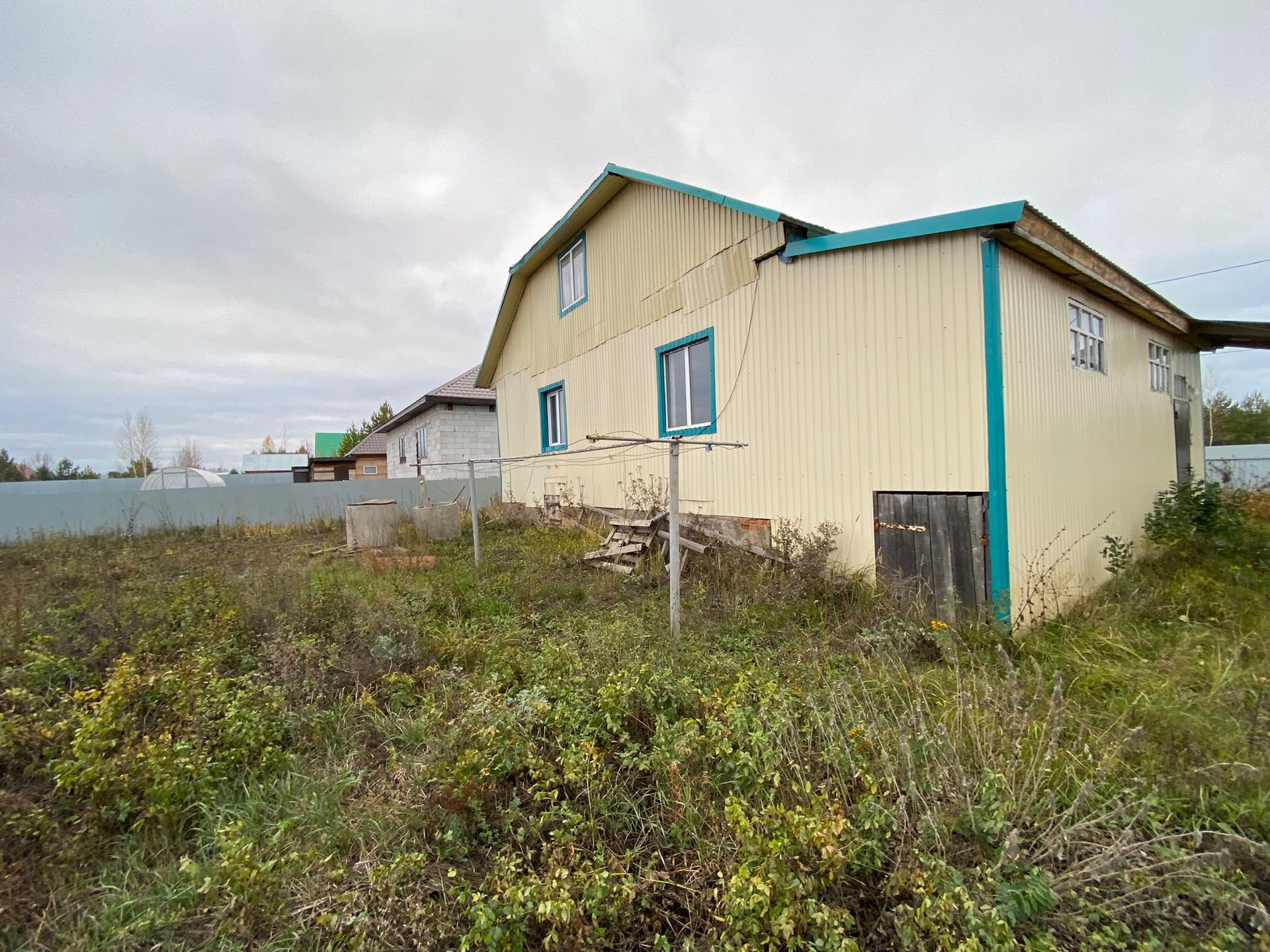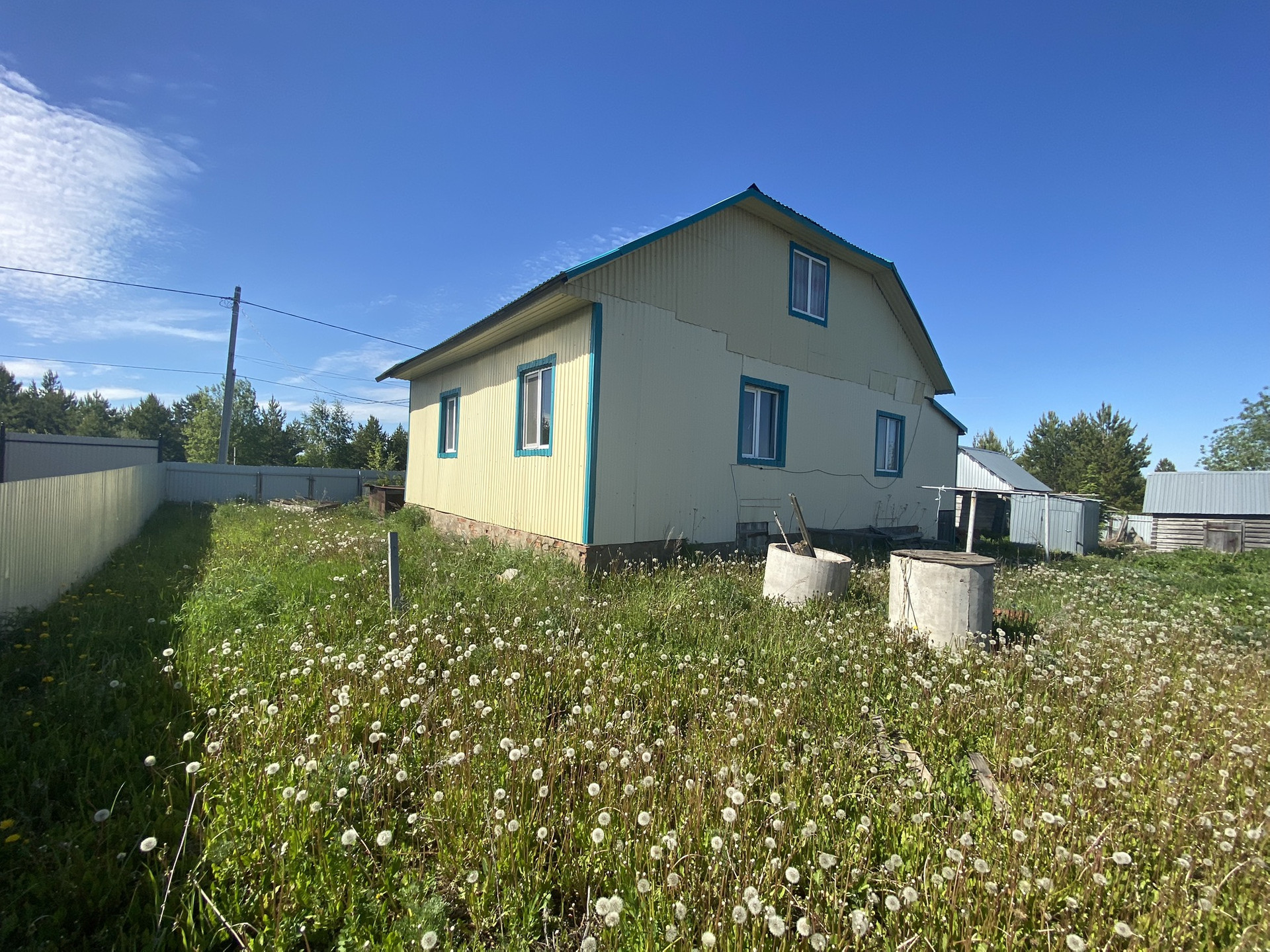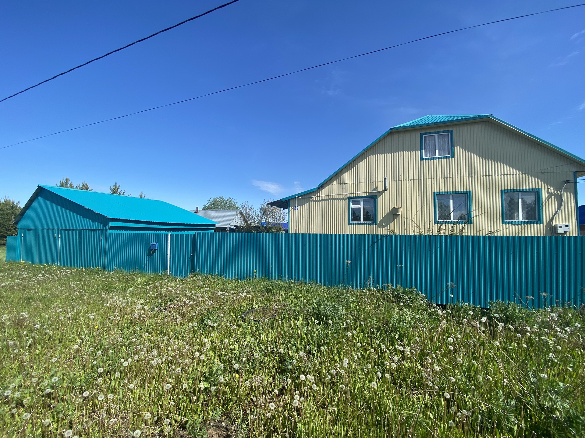Дом обшит профнастилом,окна пластиковые.