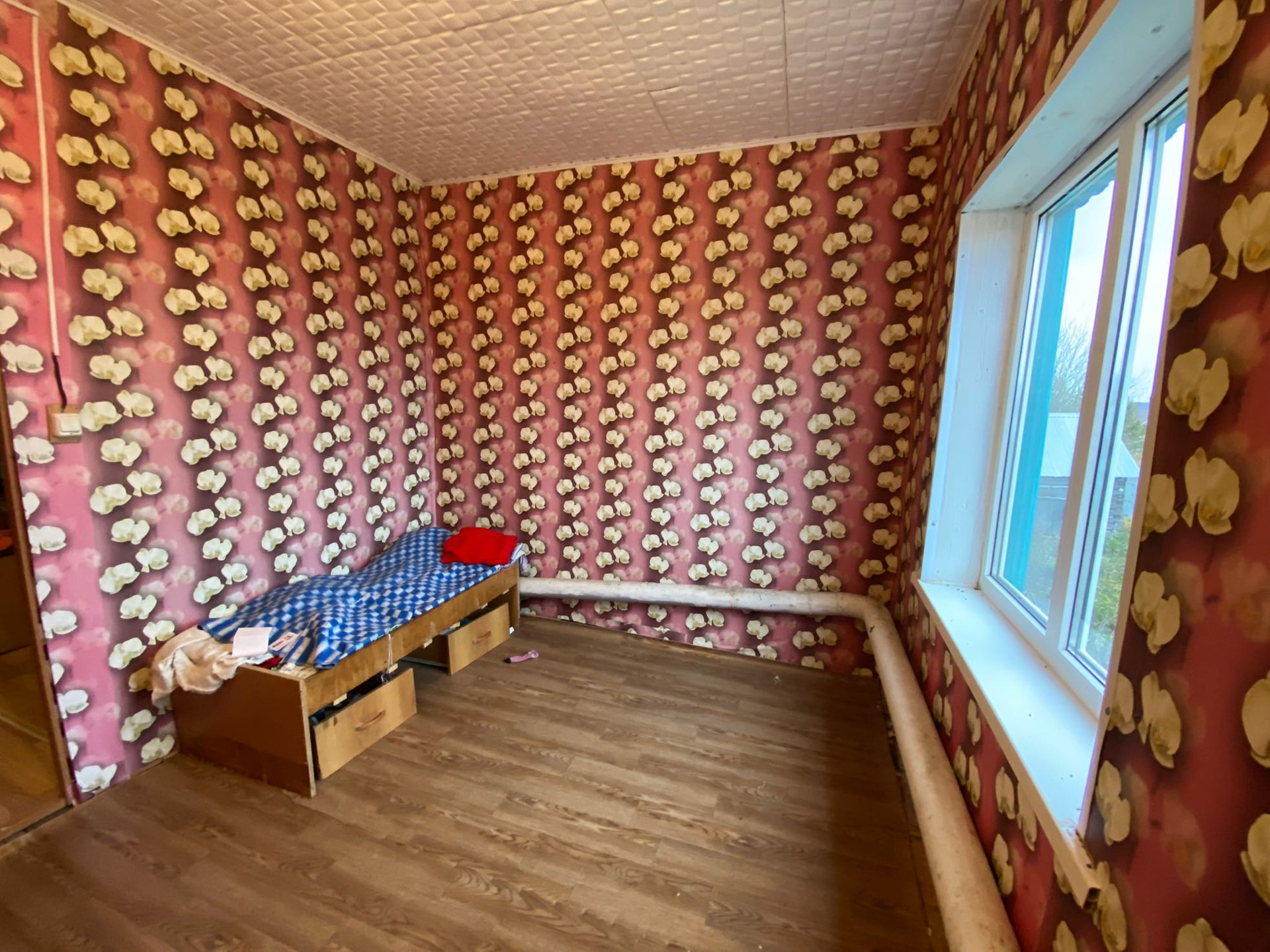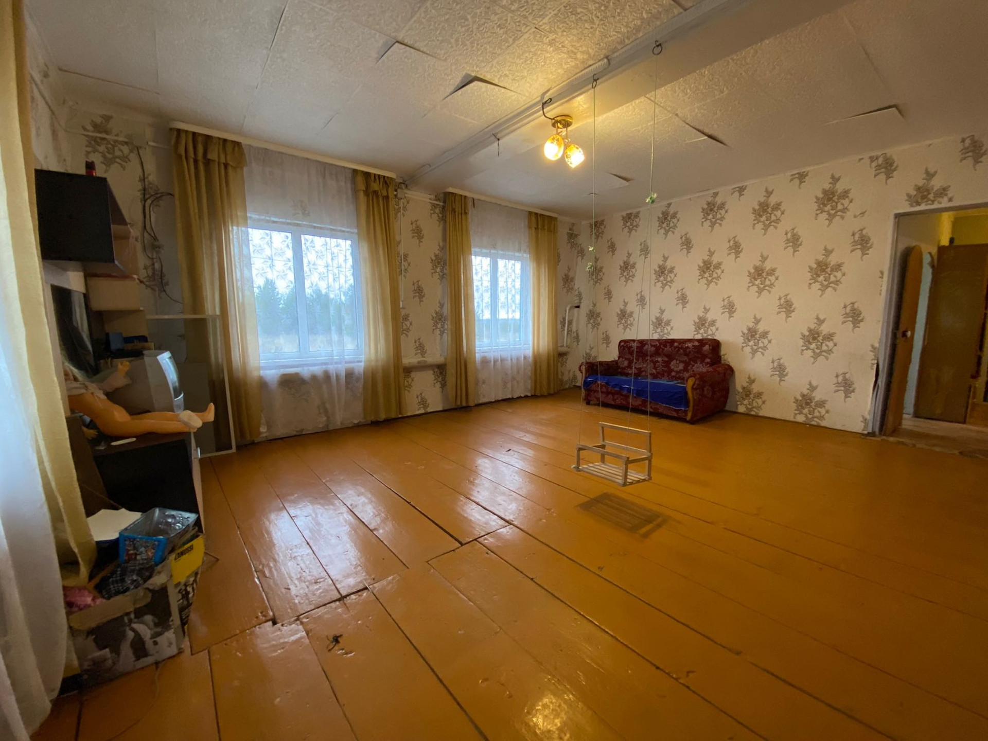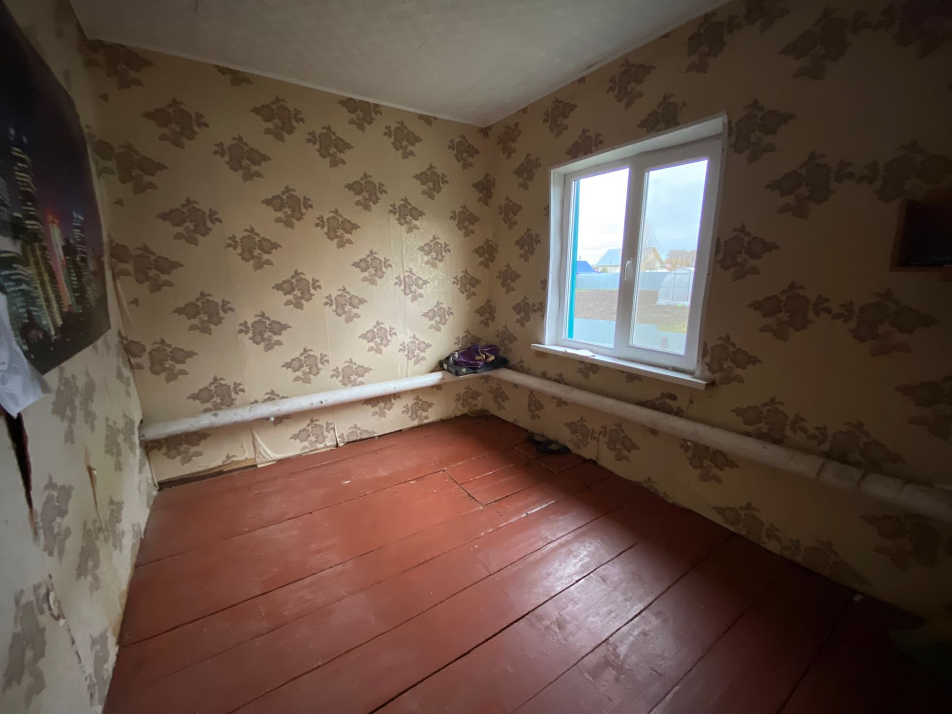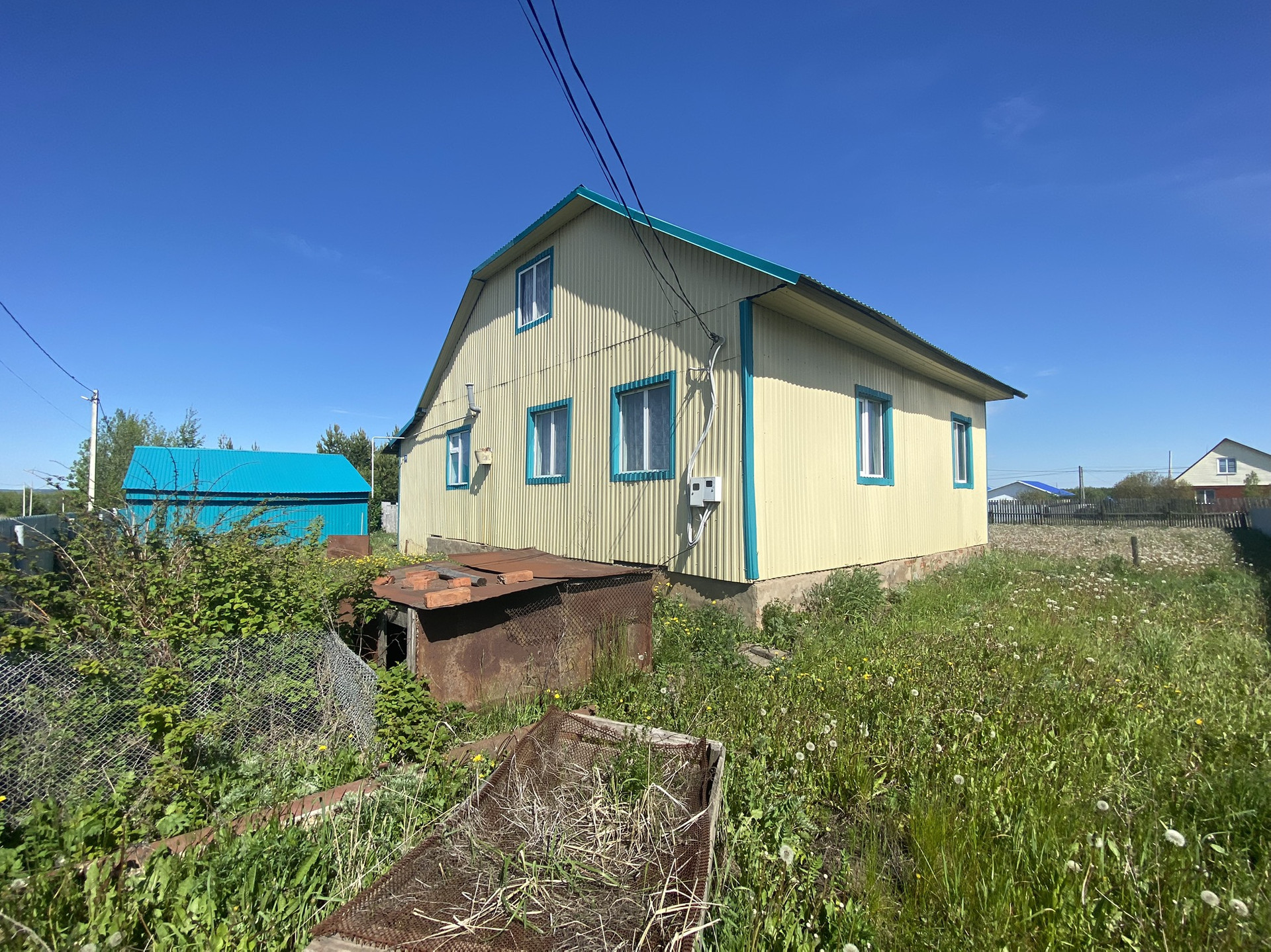 Дом обшит профнастилом,окна пластиковые.