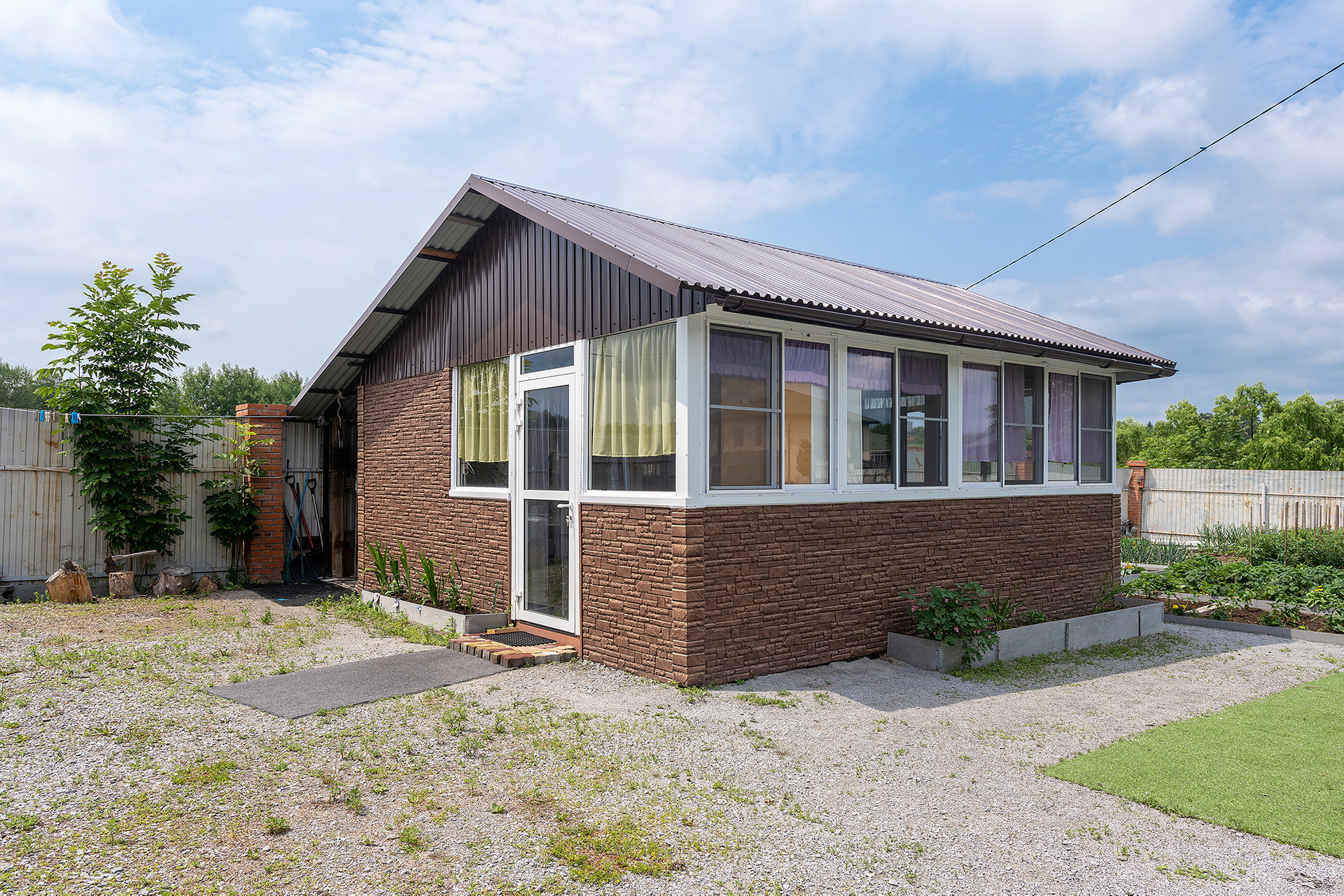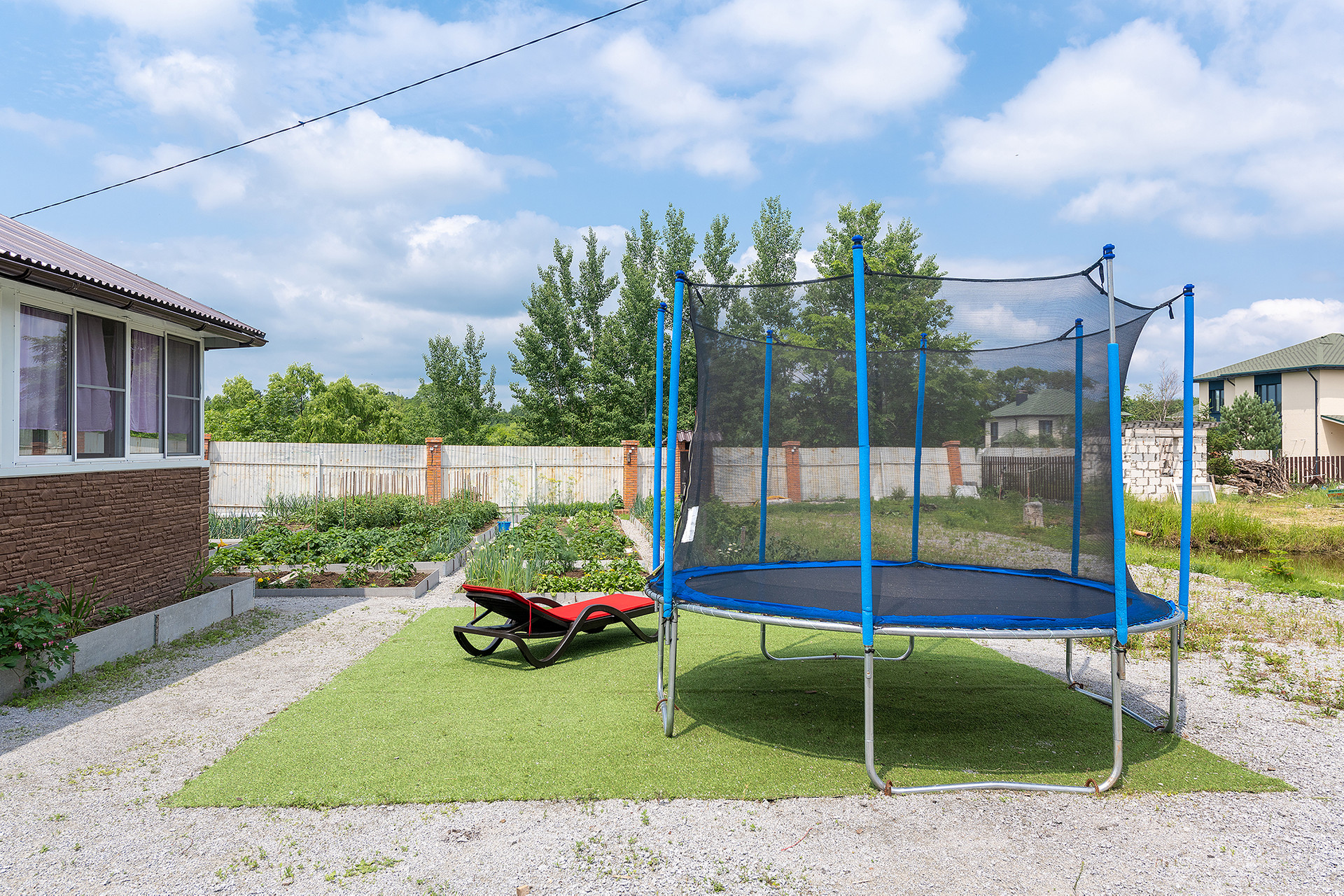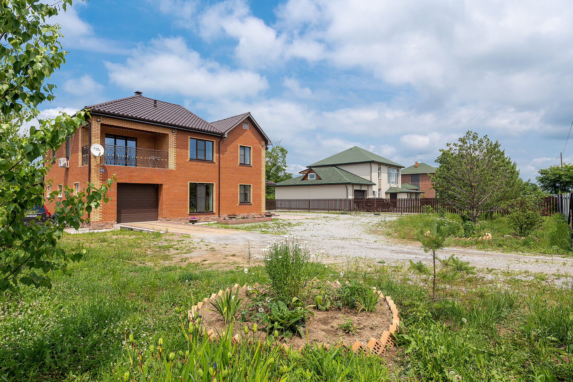 На участке оборудованы закрытая беседка с кухонным гарнитуром и кондиционером, подсобные хозяйственные помещения. Большой гараж на 2 автомобиля.