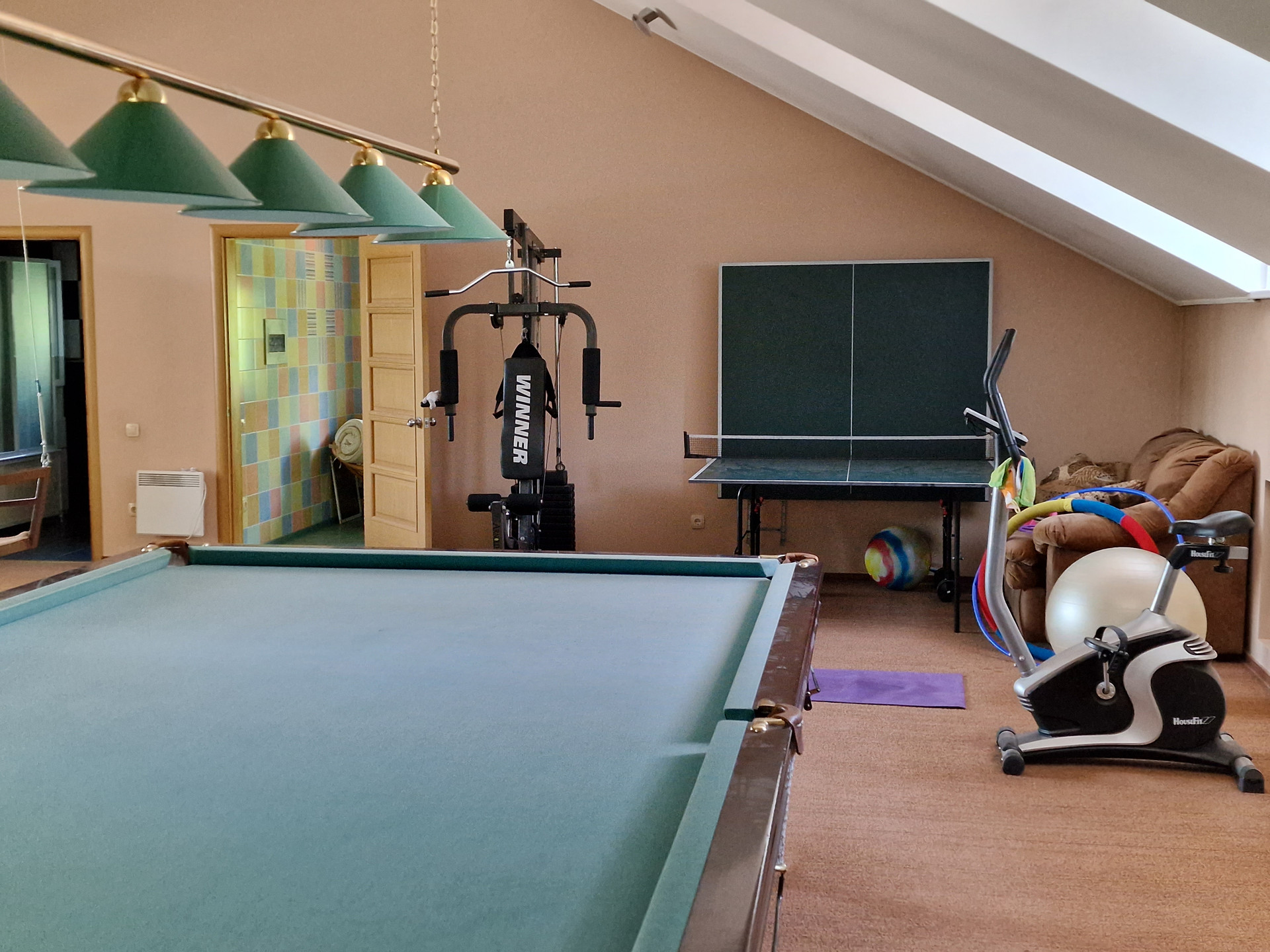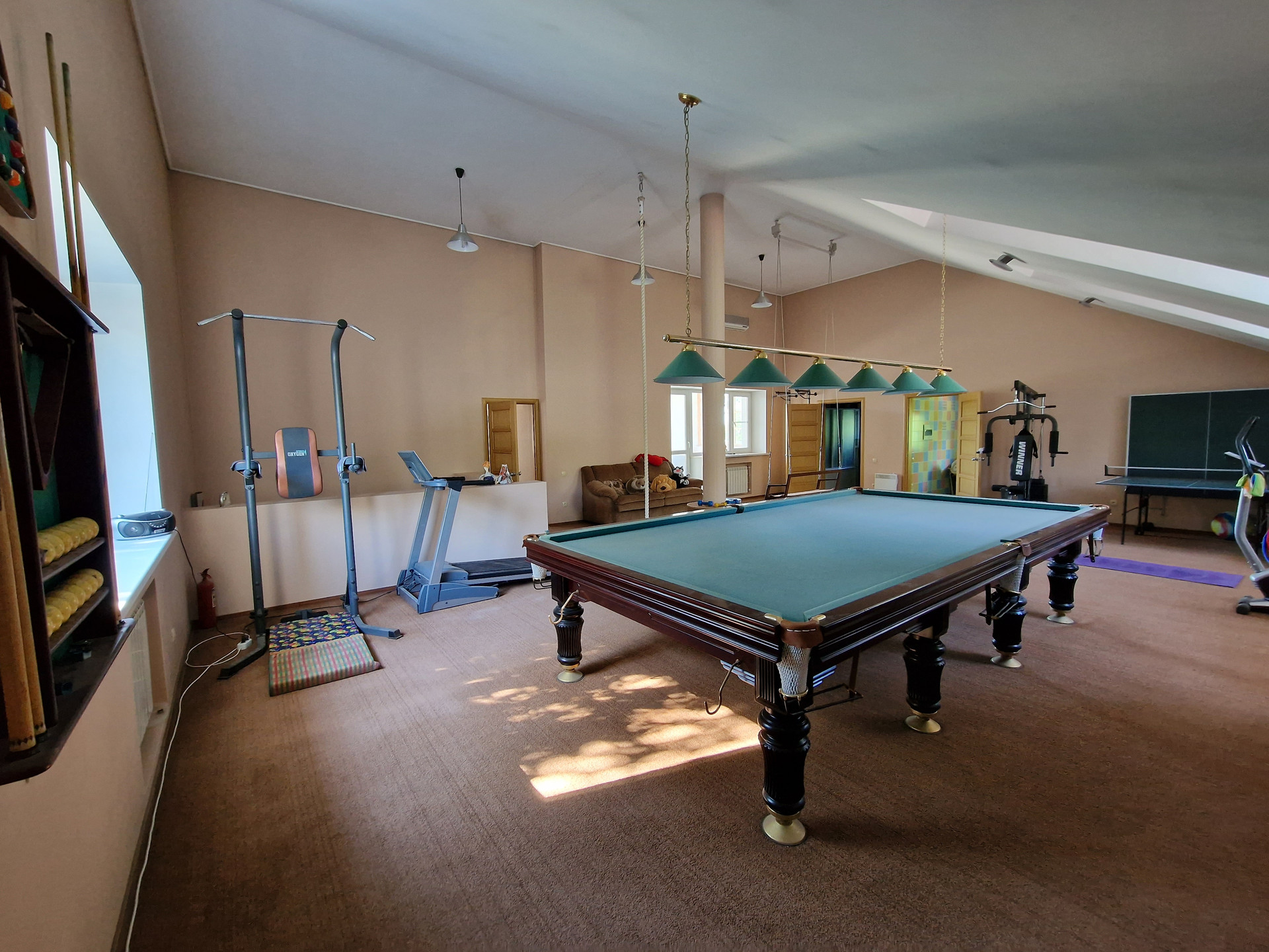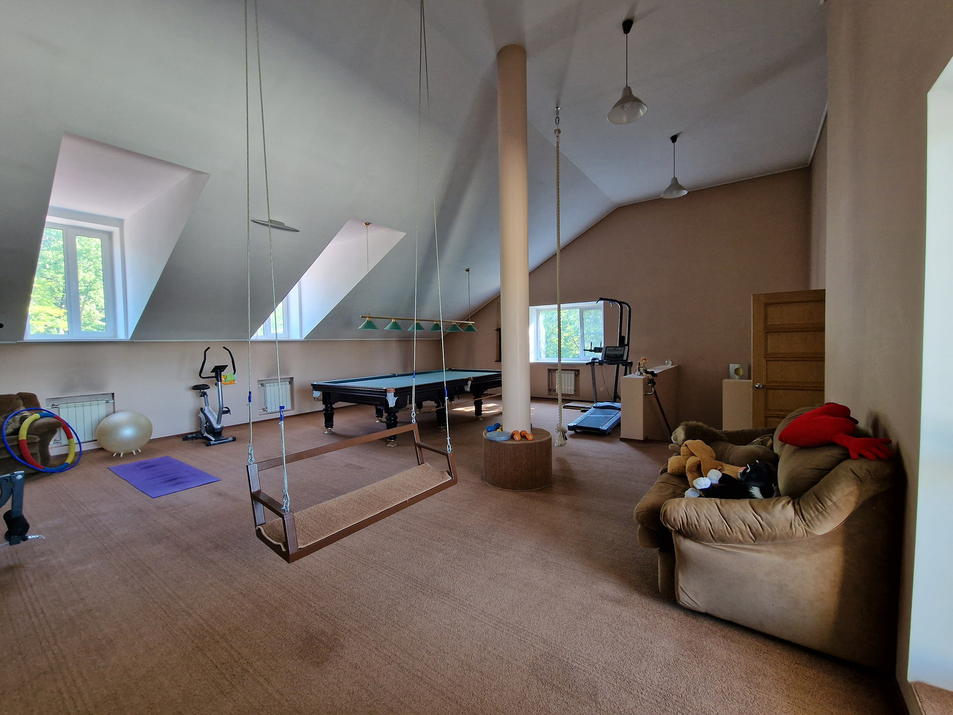 На 3 этаже: Бильярд, стол для игры в пинг-понг, качели, тренажеры для занятий спортом, спальня, с/у и терраса 64 кв.м. с живописным видом на Амурскую протоку и г. Хабаровск. Все городские салюты как на ладони!