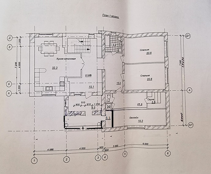 На 1 этаже: Кухня-столовая 32,3 м2, 2 спальни по 20,6 м2, бассейн с ПРОТИВОТОКОМ для плавания, сауна, 2 с/у.