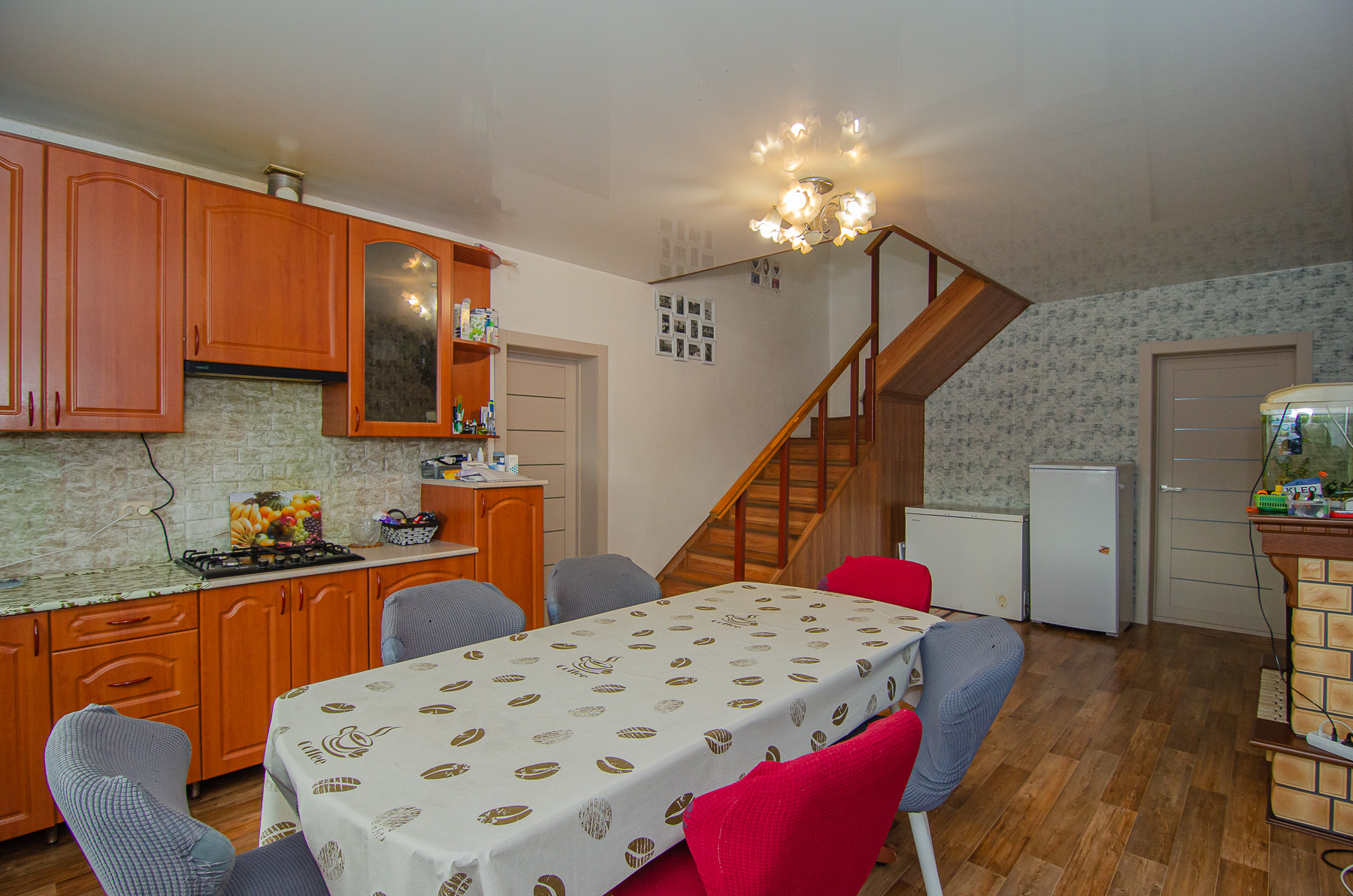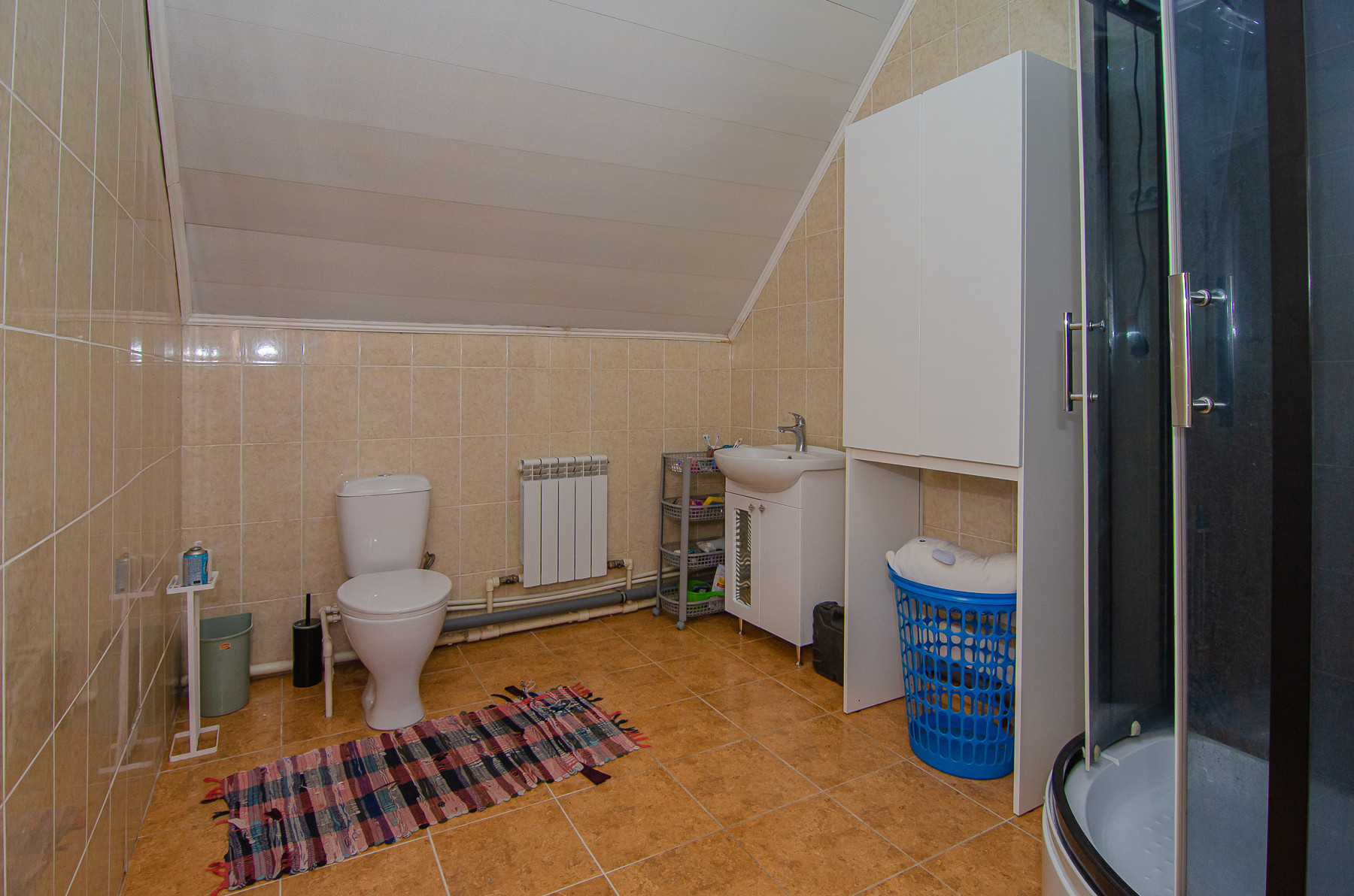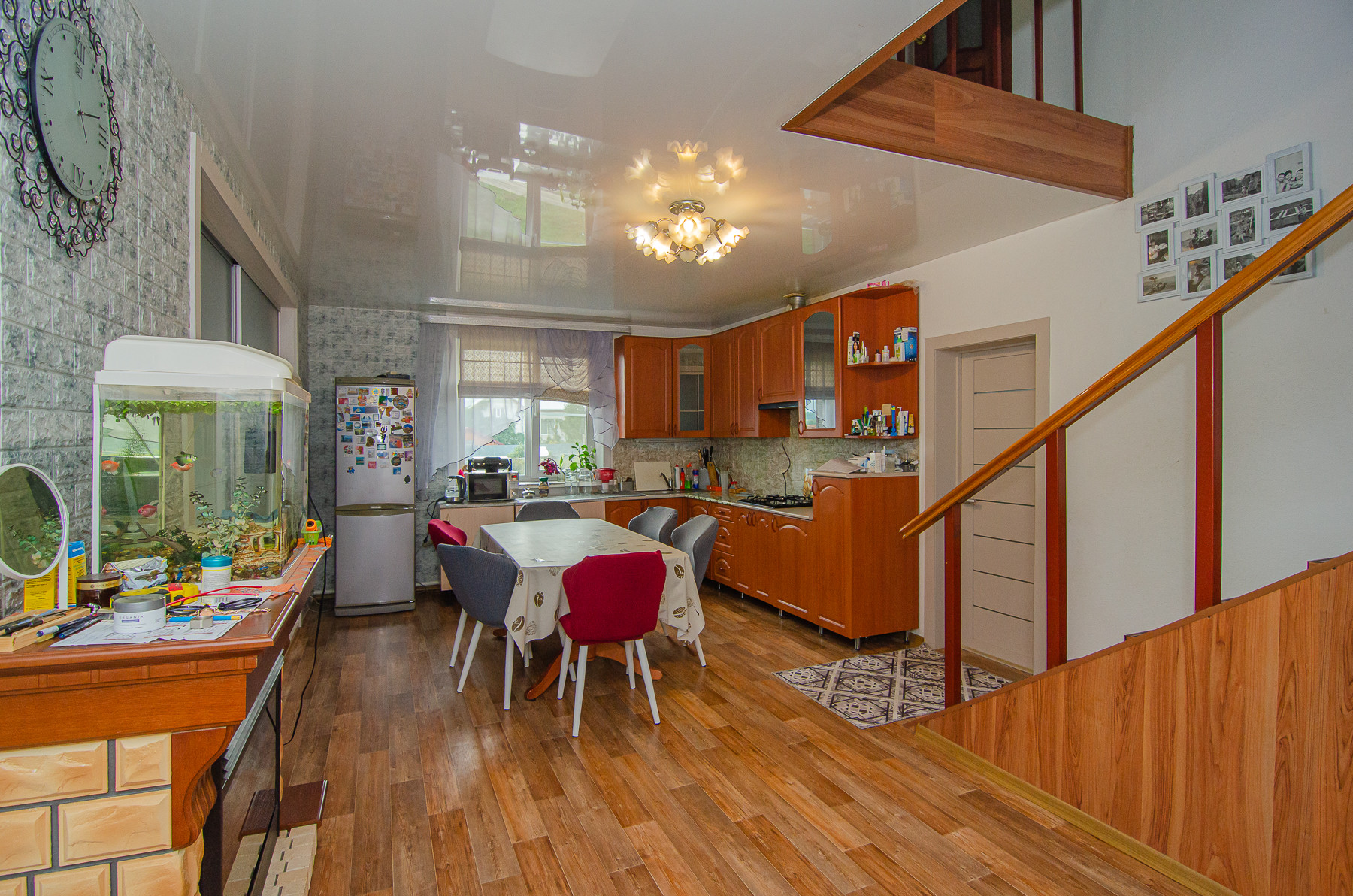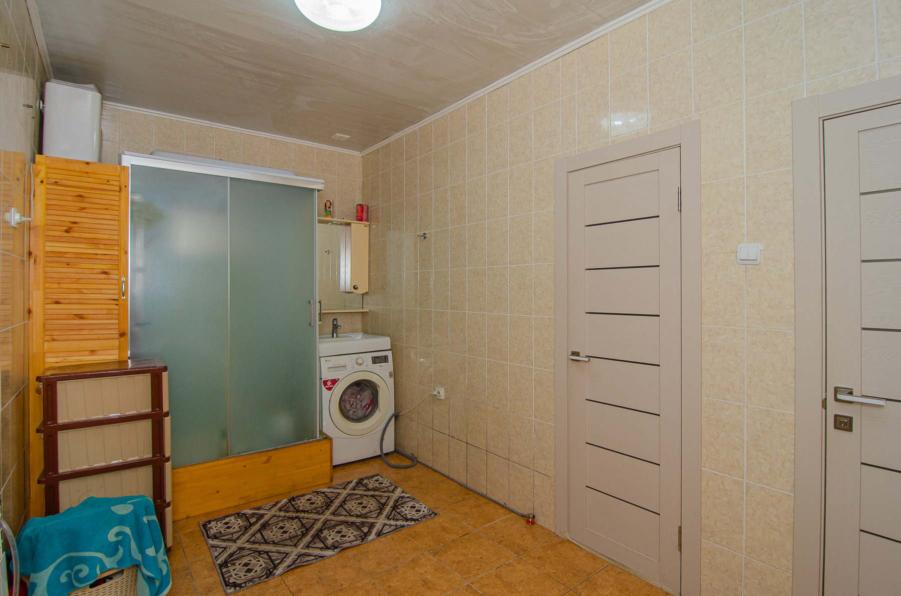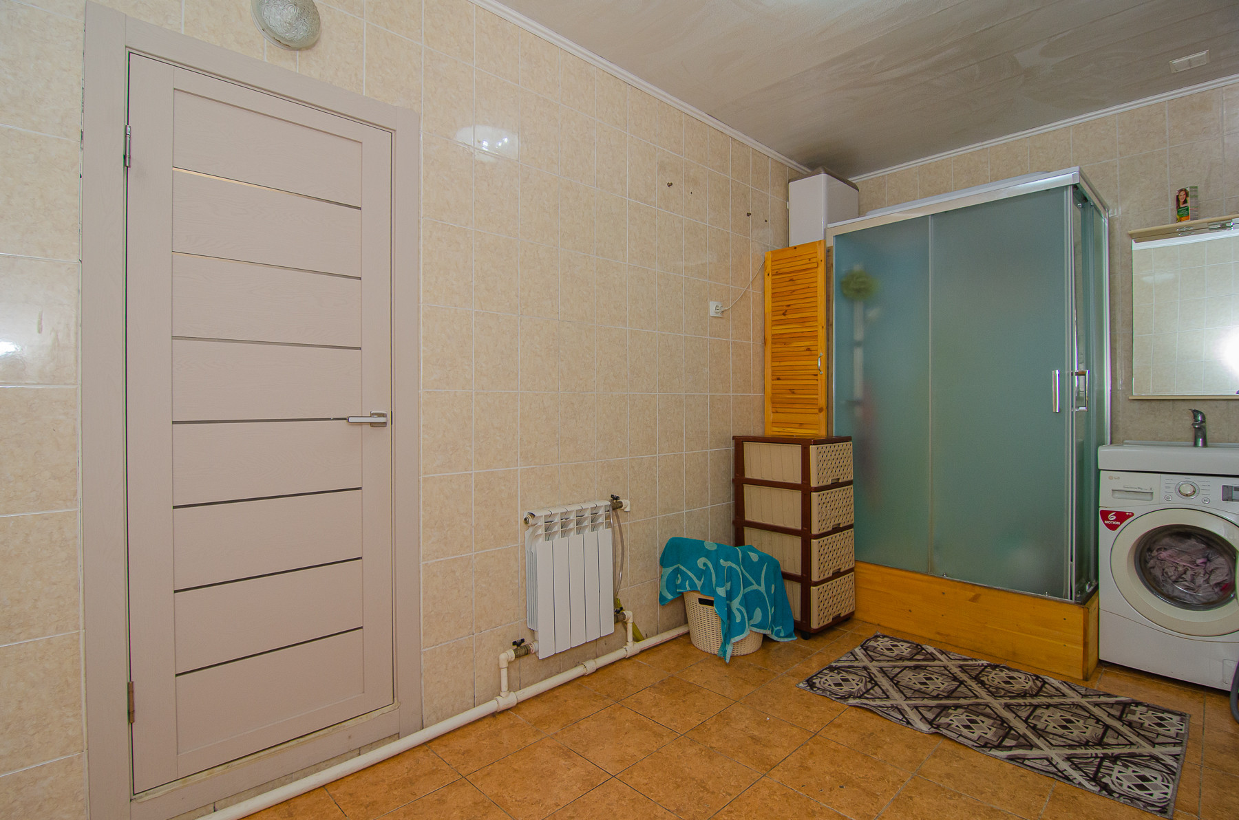 На первом этаже также размещены: - прачечная, имеется бойлер на сто литров, душевая кабина и санузел стены отделаны кафелем, - котельная : установлены электрокотел ZOTA 24 КВ. с GSM модулем, жидкотопливный котел KITURAMI 21КВ(дизель), бак под дизельное топливо с автоматической подачей, циркулярный насос и гидроаккумулятор для поддержания постоянного водоснабжения, электрика новая, установлены отдельные автоматы на все.