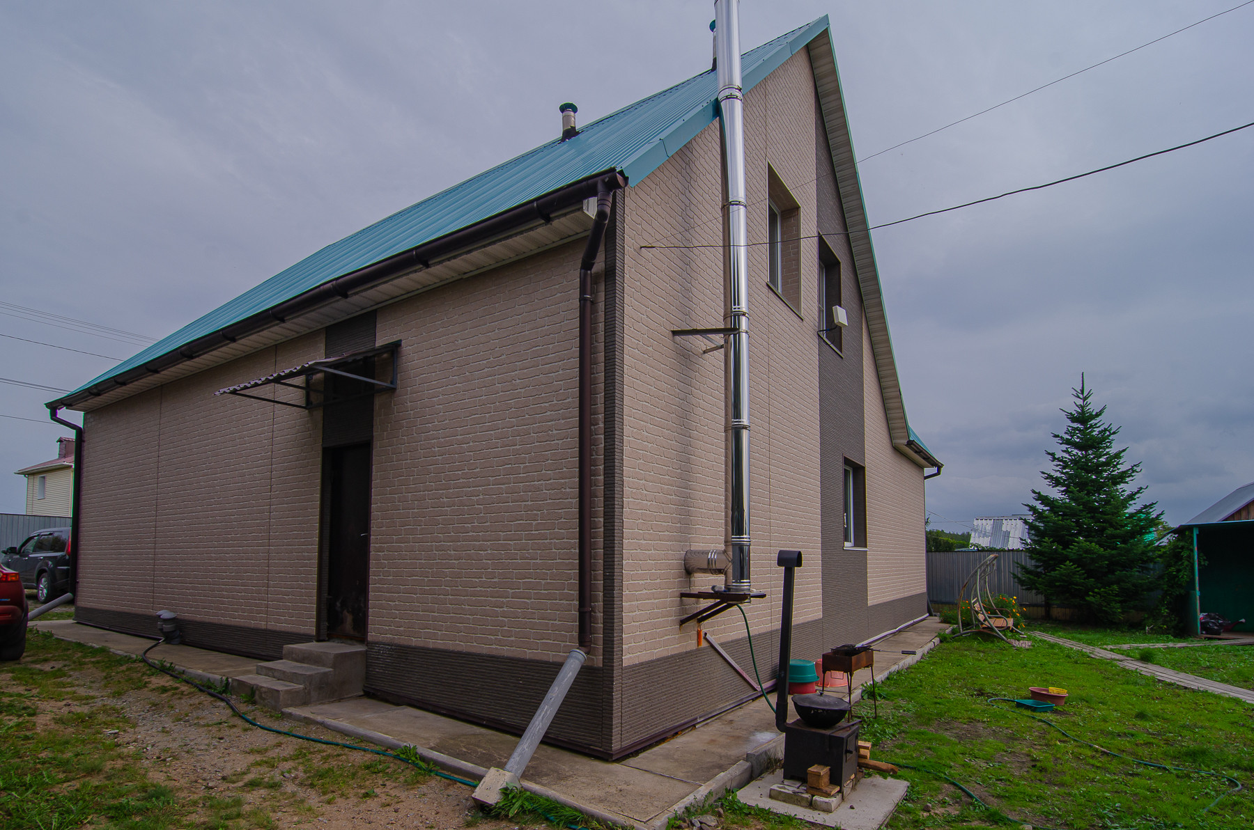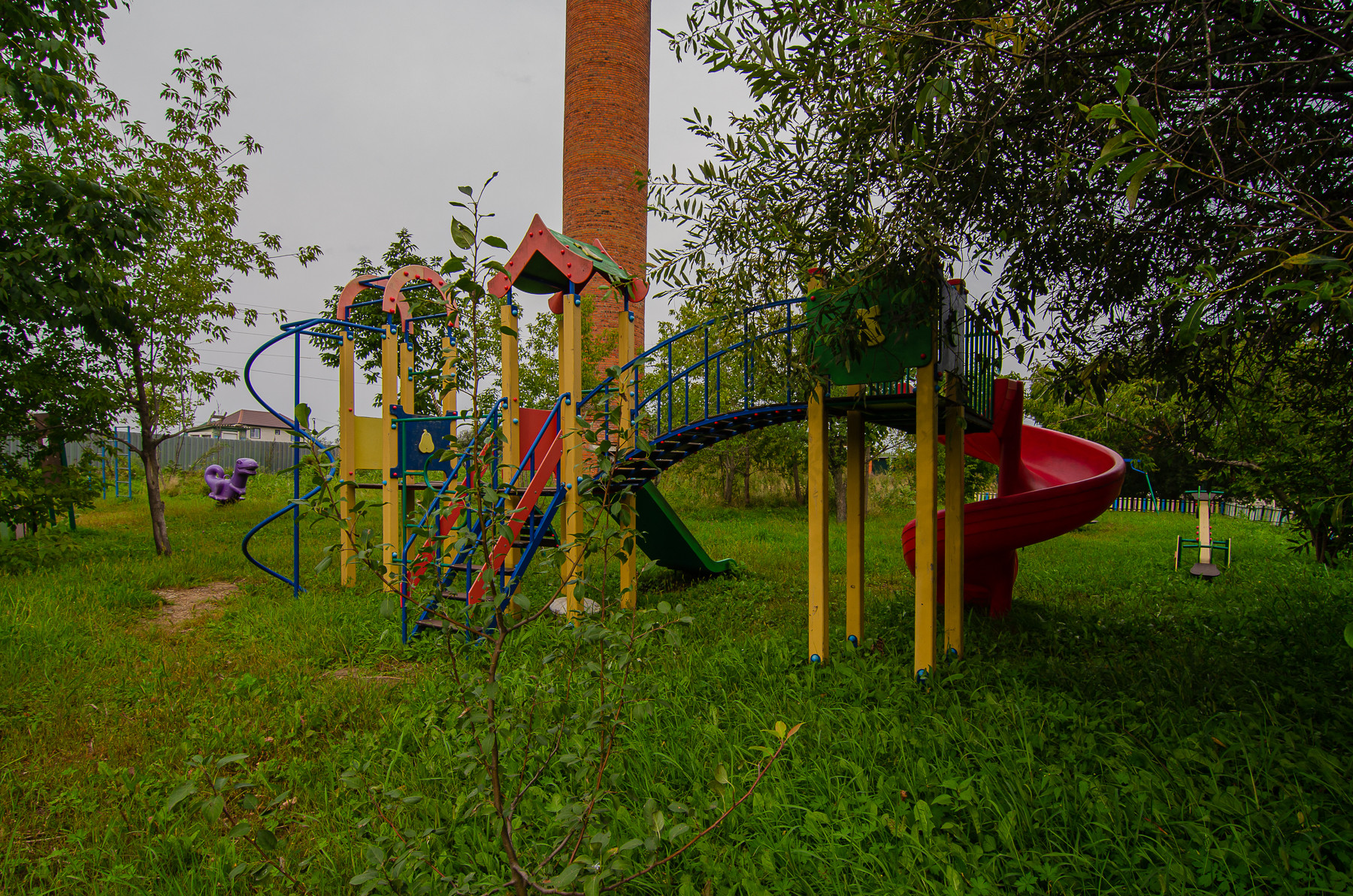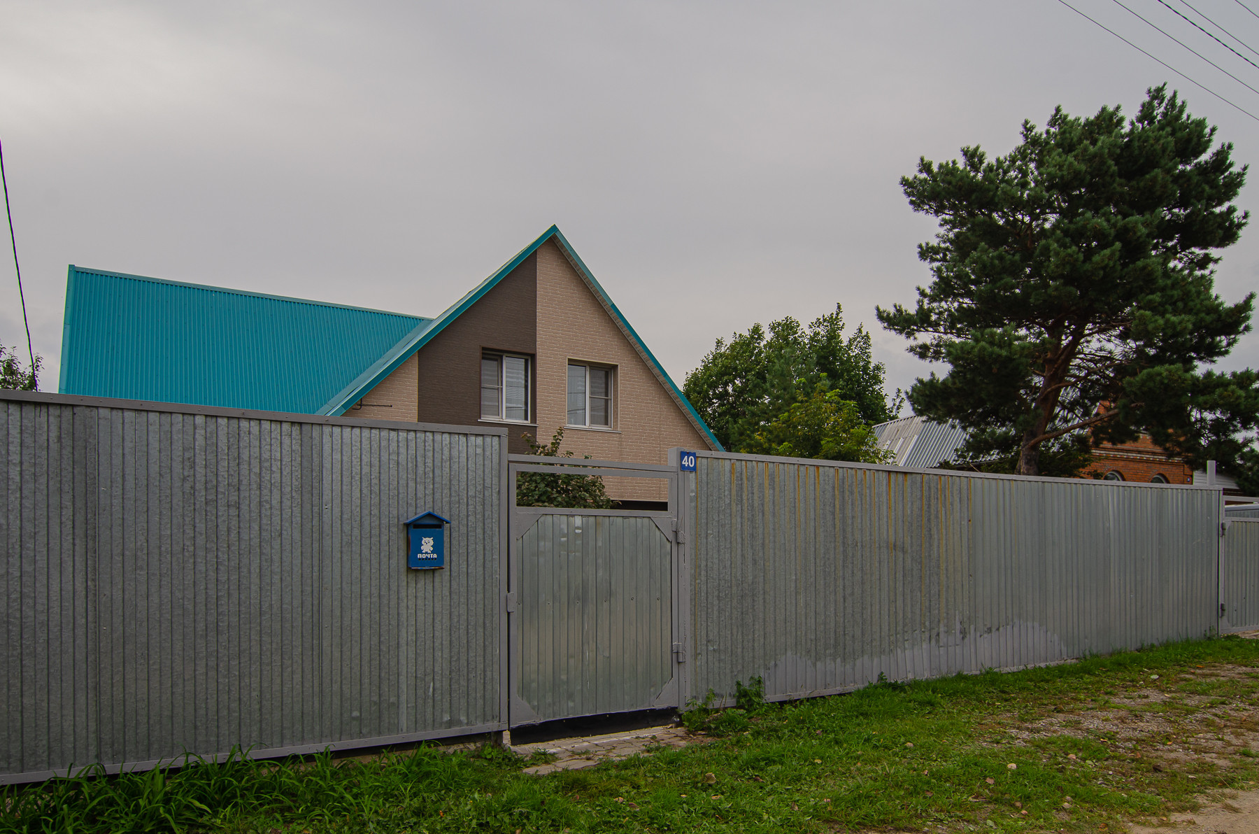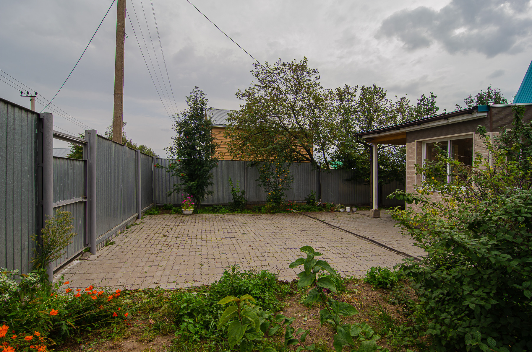 Территория огорожена капитальным забором, на въезде установлены ворота, перед домом установлена большая детская площадка, оборудованная спец инвентарём.