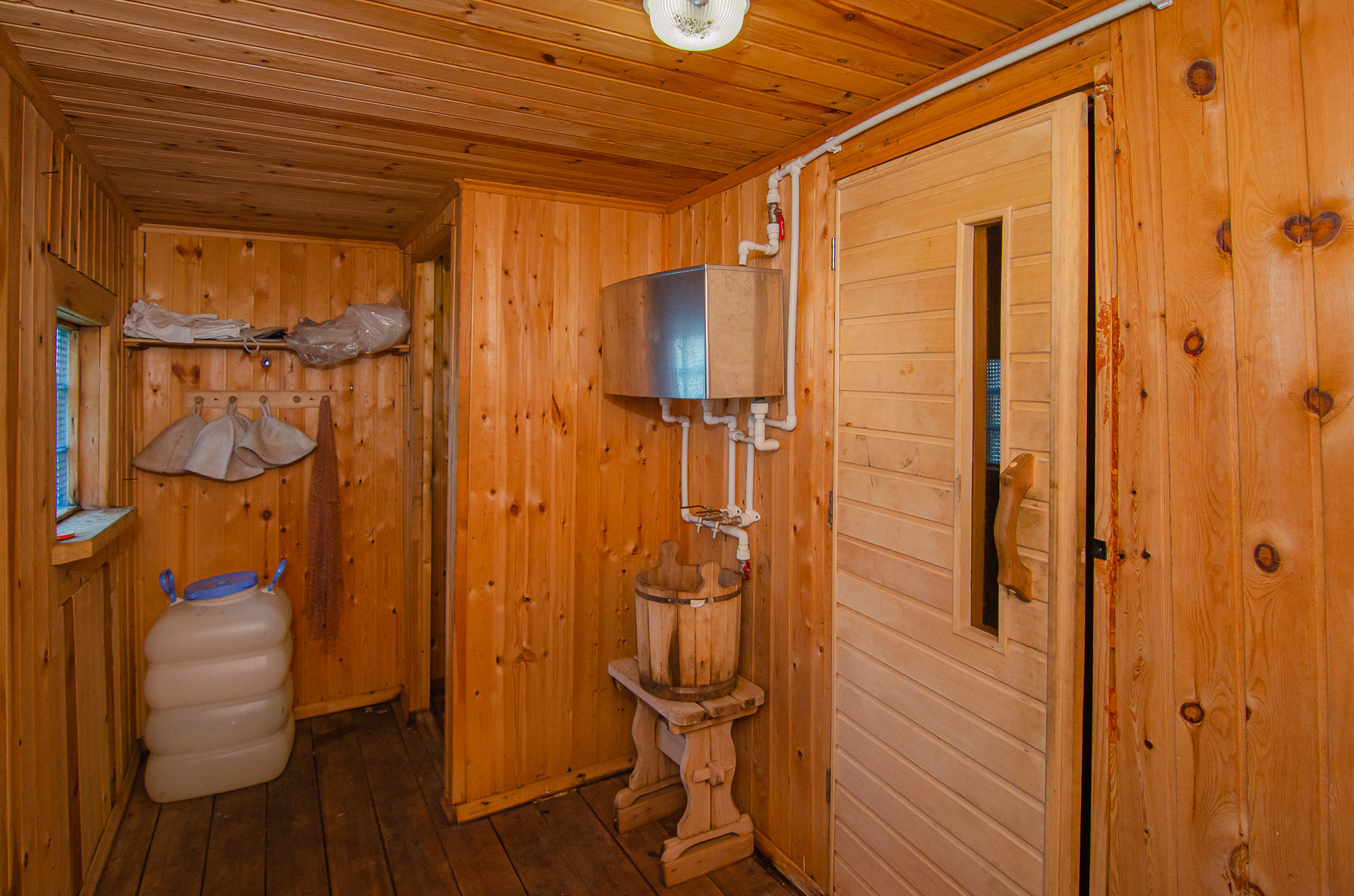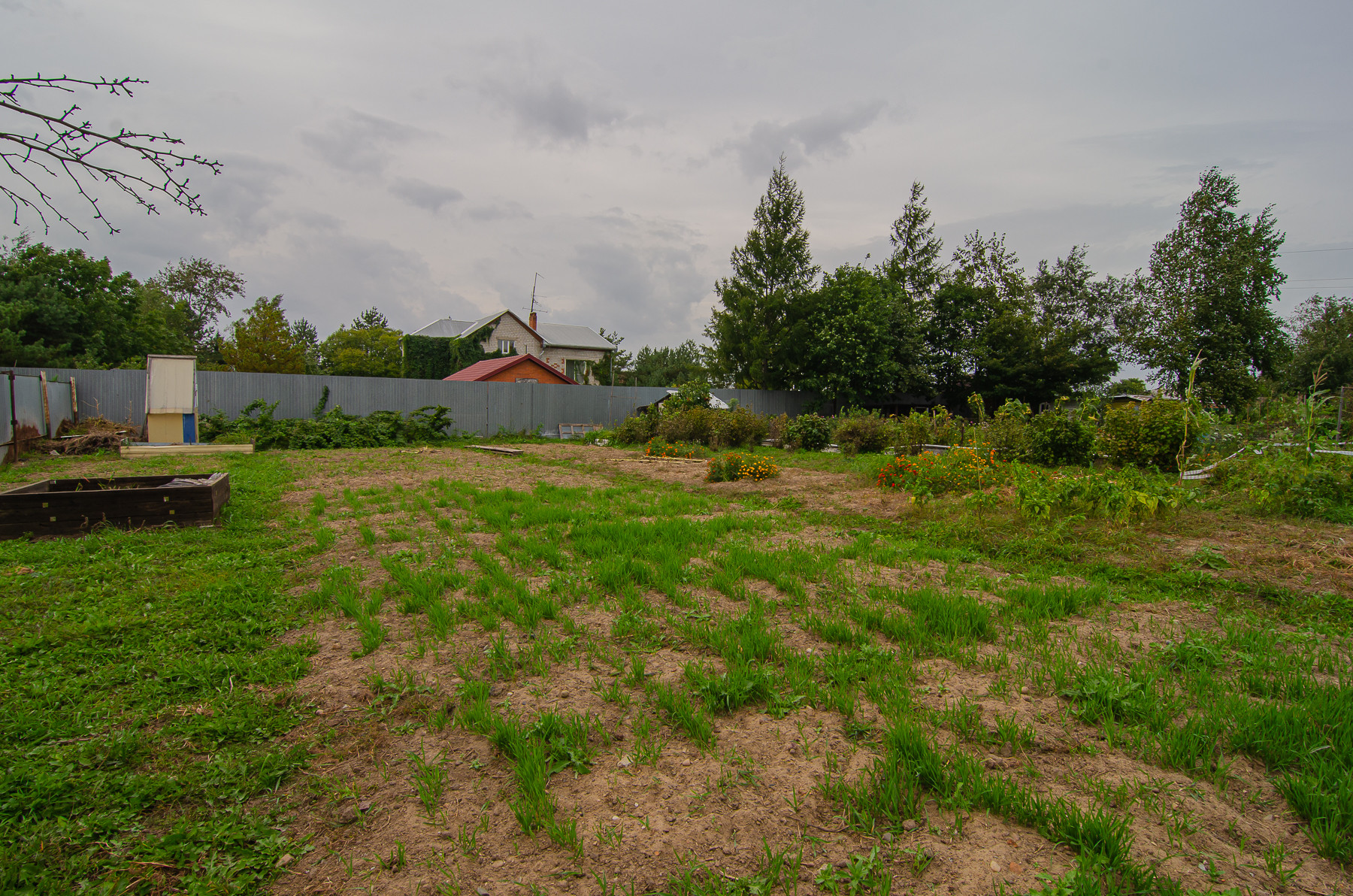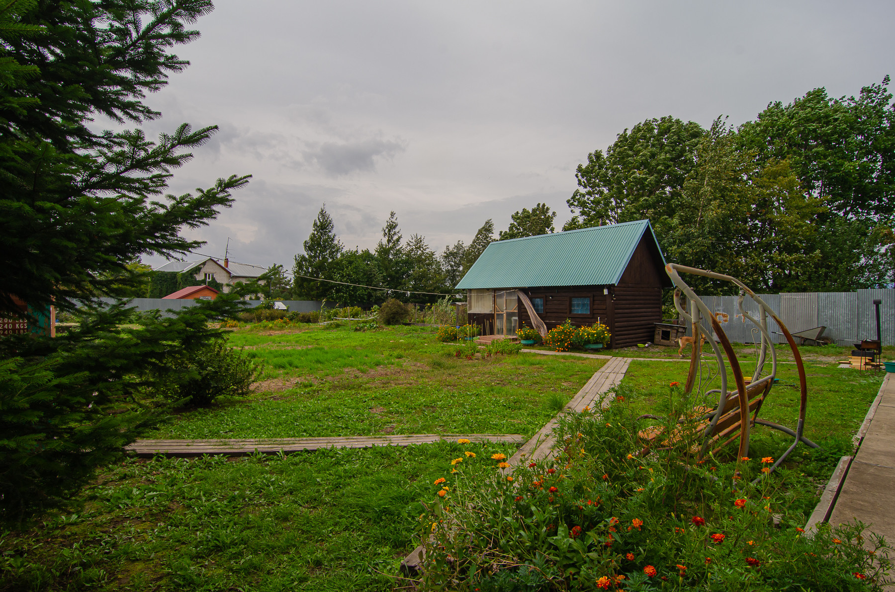 На участке расположены летняя кухня, баня, контейнер для инвентаря с шикарной системой хранения (стеллажи новые).