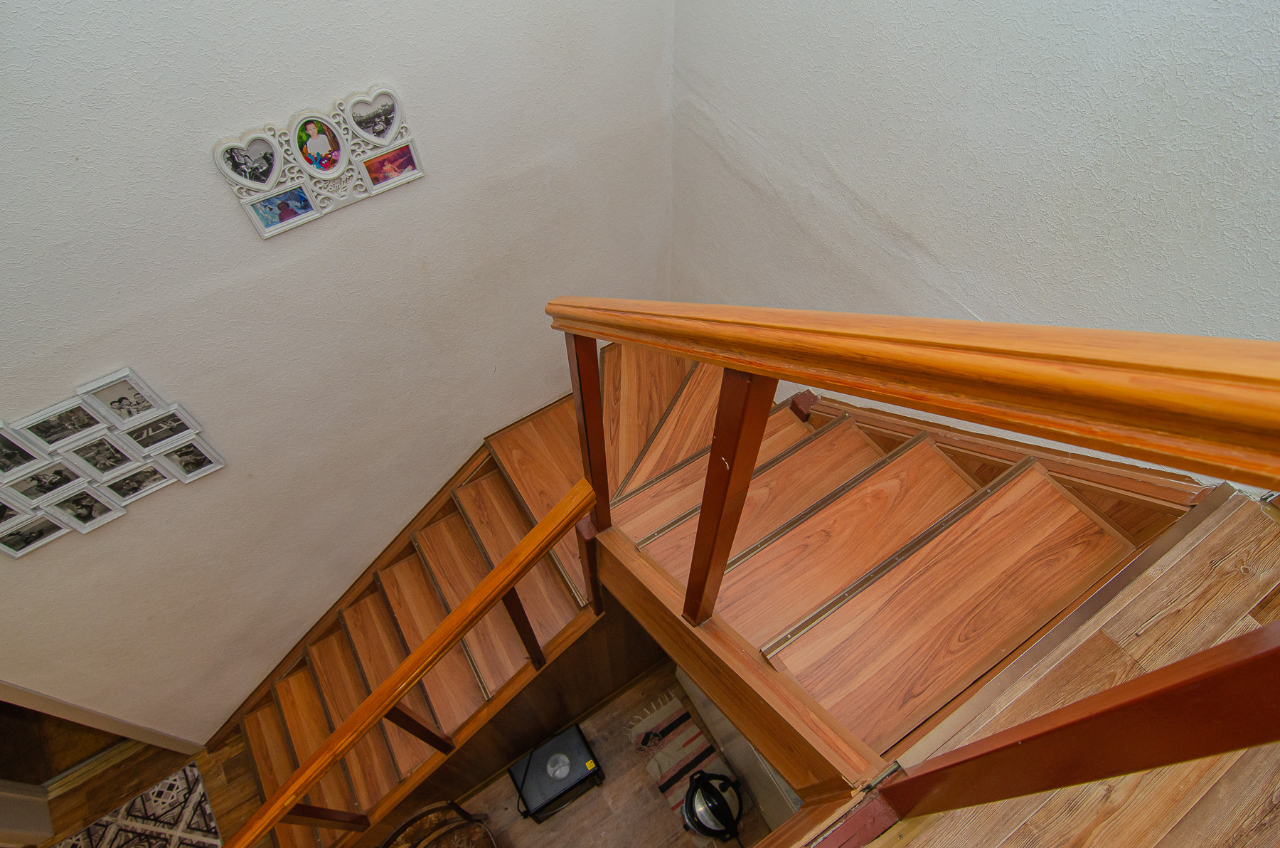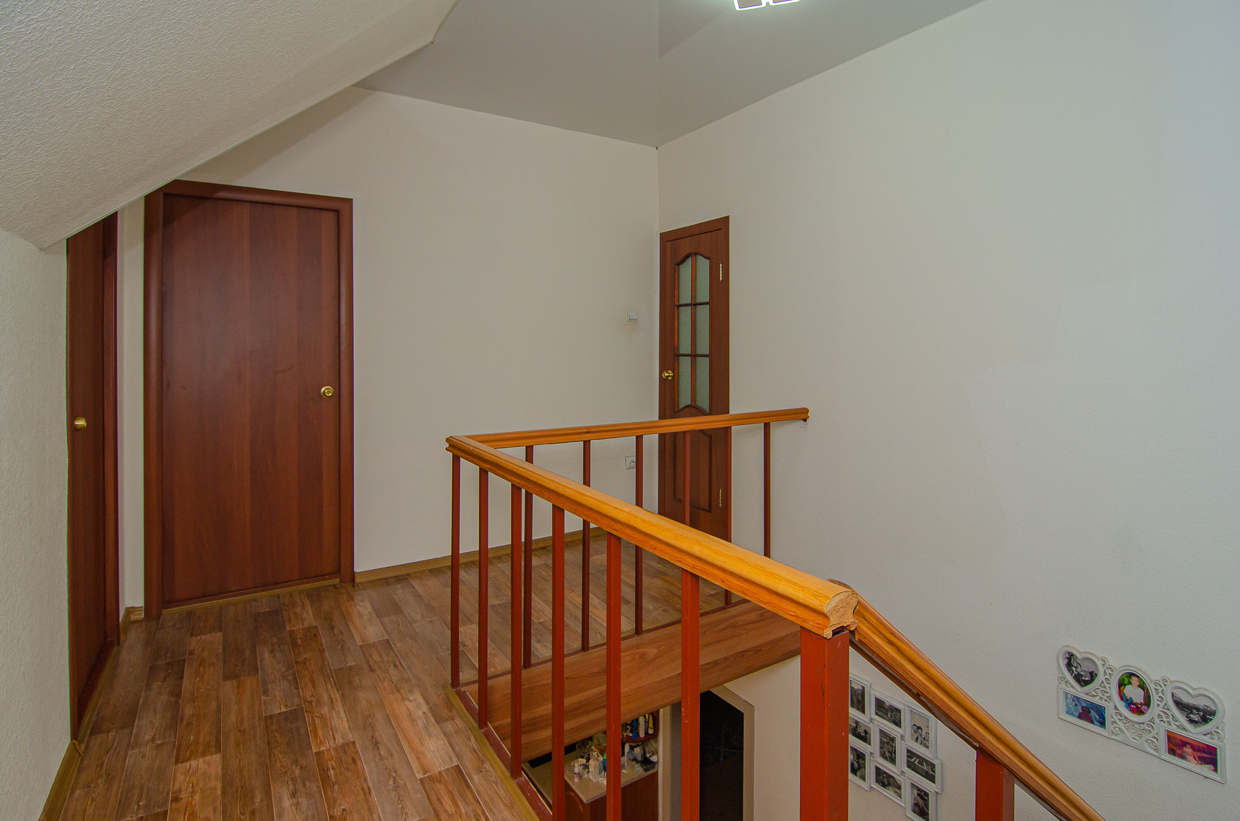 На 2 этаж ведет деревянная лестница с металлическим каркасом.
