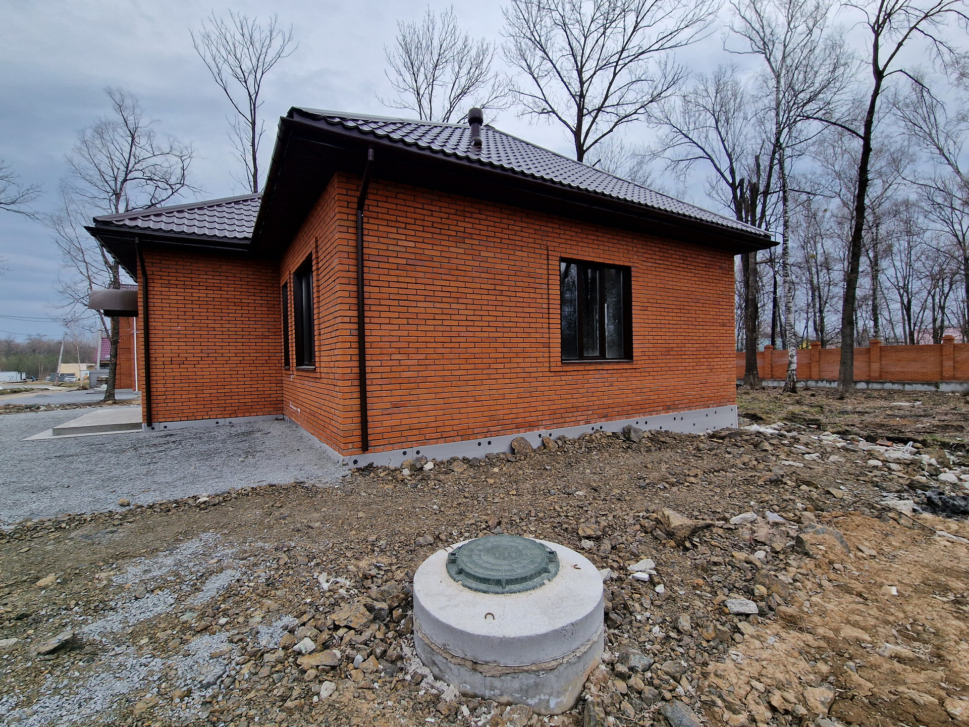 Кирпичный забор на фундаменте.