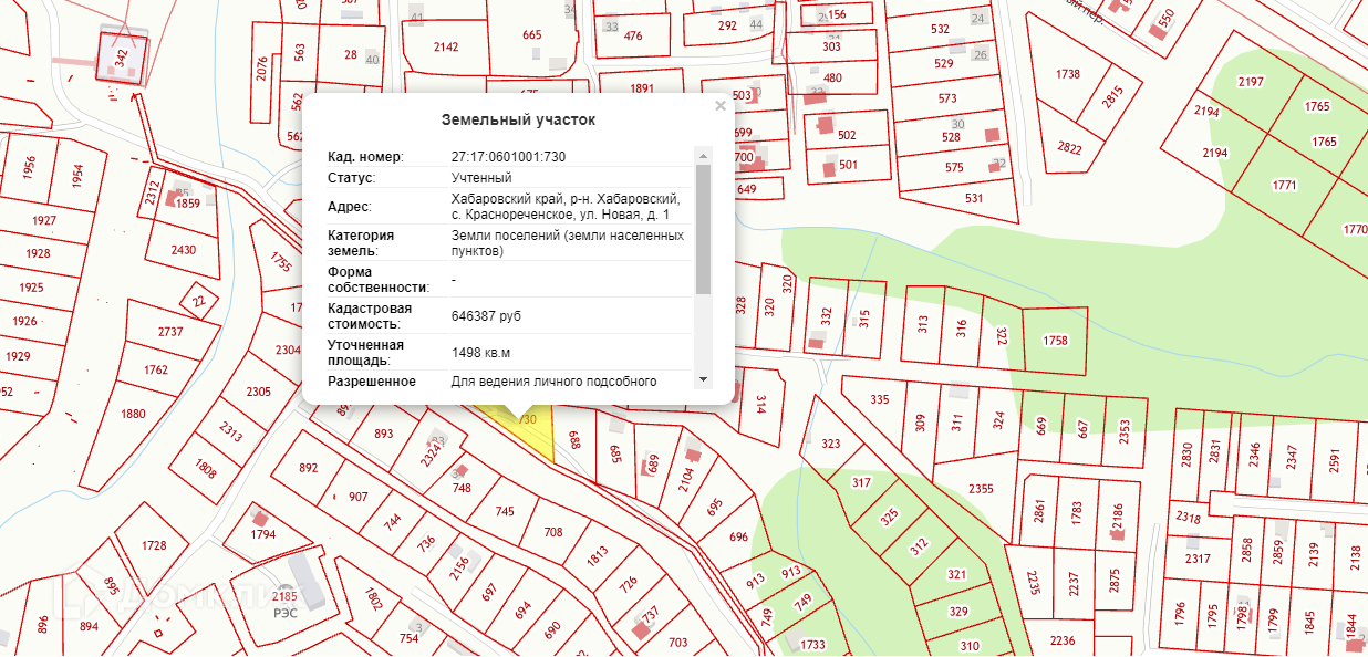 27:17:601001:730 участок в собственности. Категория земель: земли населённых пунктов, разрешённое использование: для введения личного подсобного хозяйства.