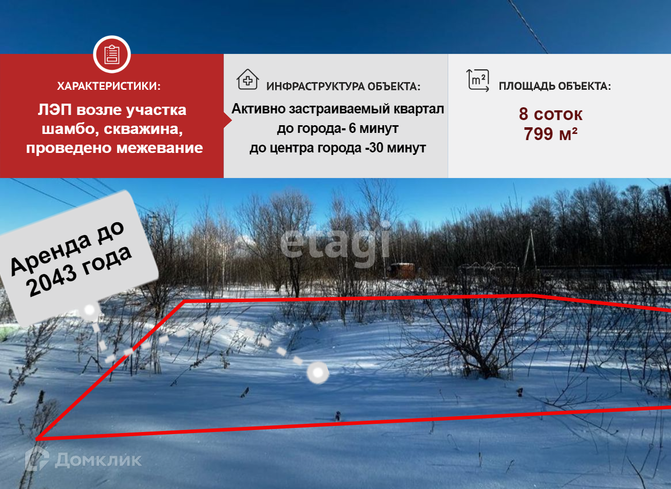 Участок в аренде до 2043 год.