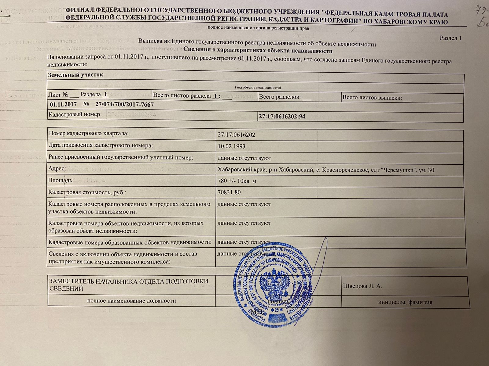 Участок в СНТ, 7.8 сот. на продажу в селе Краснореченском