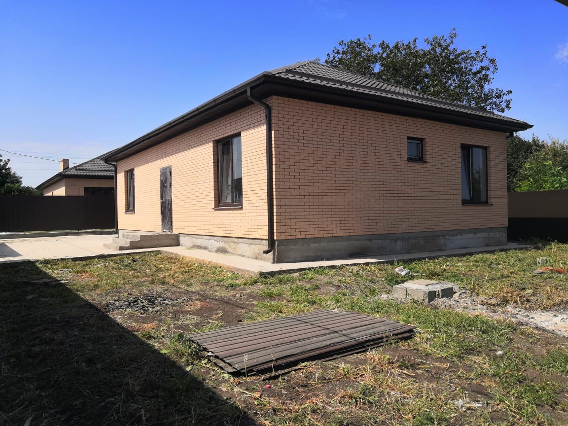 Продаётся 1-эт. новый дом с. Красносельское, ул. Пушкина, 105/ 45/ 28 кирпич. Дом из качественных материалов, 2022 года постройки. Предчистовая отделка, отличная возможность сделать ремонт по вашему вкусу. Тёплые полы. 3 комнаты, санузел, коридор, просторная прихожая, кухня-столовая 28 кв.м. с выходом на участок. Металлопластиковые окна, металлическая дверь. Двор на 2-3 лег., авто. Земельный участок 4.25 сотки, ИЖС, 2 входа/ выхода. Газ, эл-во 3 фазы 15 кВт, интернет оптоволокно по меже, септик. Все фото соответствуют. Недалеко школа, дет. сад, магазины, парк, церковь, стадион. Тихое спокойное место. До г. Краснодар 15 минут на авто, 20 км. Рядом протекает широкая р. Кочеты, где можно отлично порыбачить и отдохнуть.