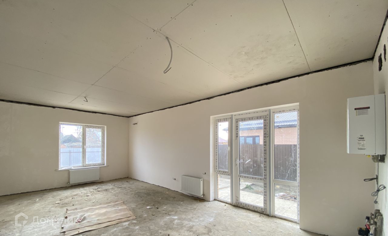 В доме выполнена качественная предчистовая отделка, разводка электричества (материалы ГОСТ), разводка сантехнических труб, тёплый пол везде, кроме спален с коллекторами, радиаторы отопления, двухконтурный газовый котёл , на стенах шпаклевка под обои, на полу сухая стяжка