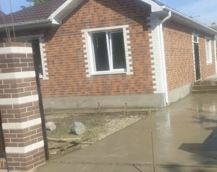 Забетонированы отмостка вокруг дома и парковочное место под авто.