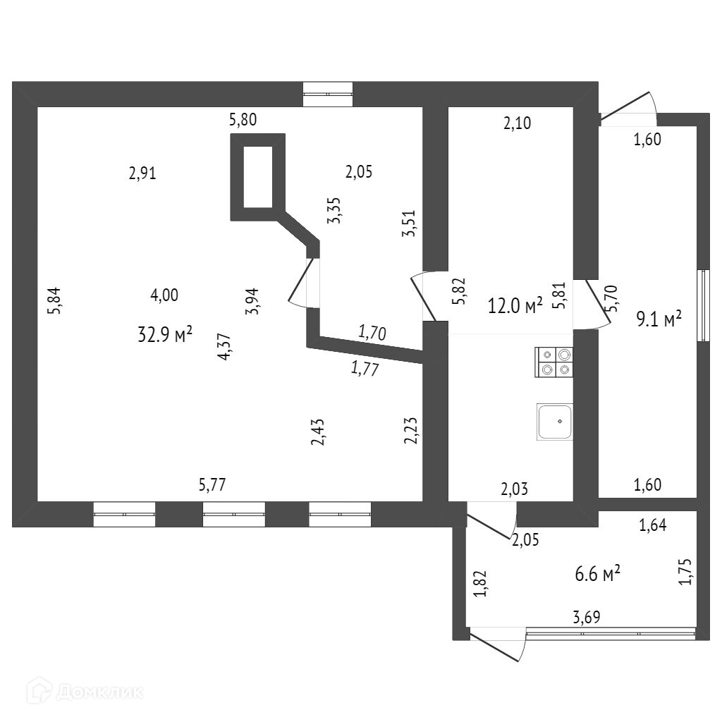 Общая площадь 60 м2
