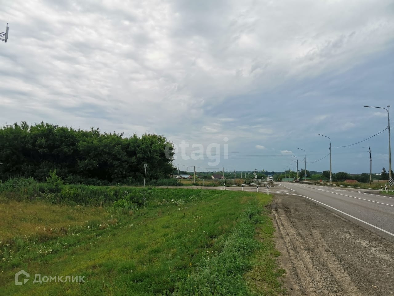 Расположен недалеко от трассы, но при этом закрыт посадками.