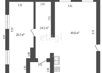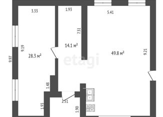 Общая площадь: 54.1 м2
