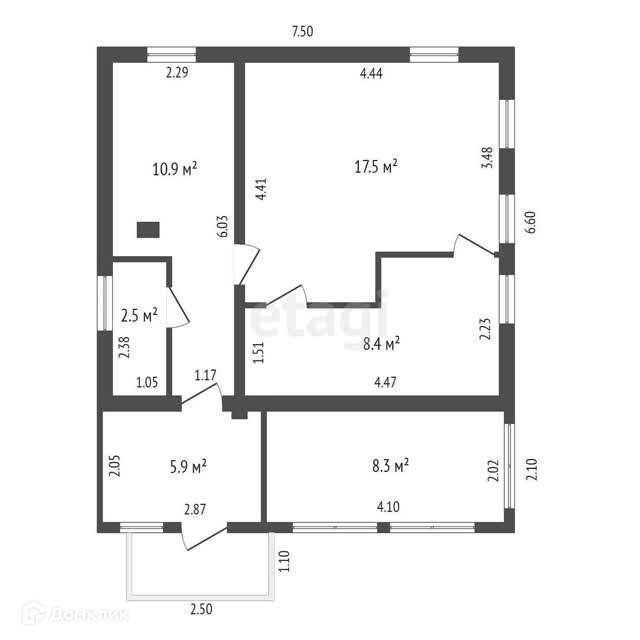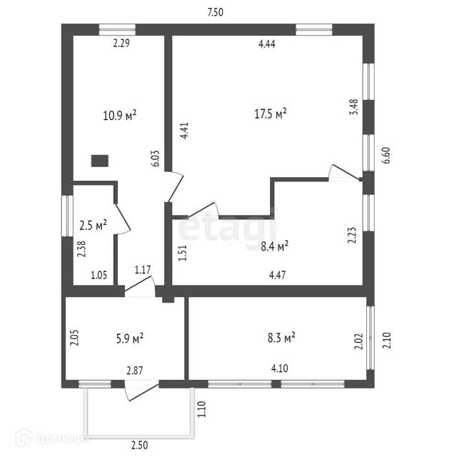 Общая площадь 33.2 м2