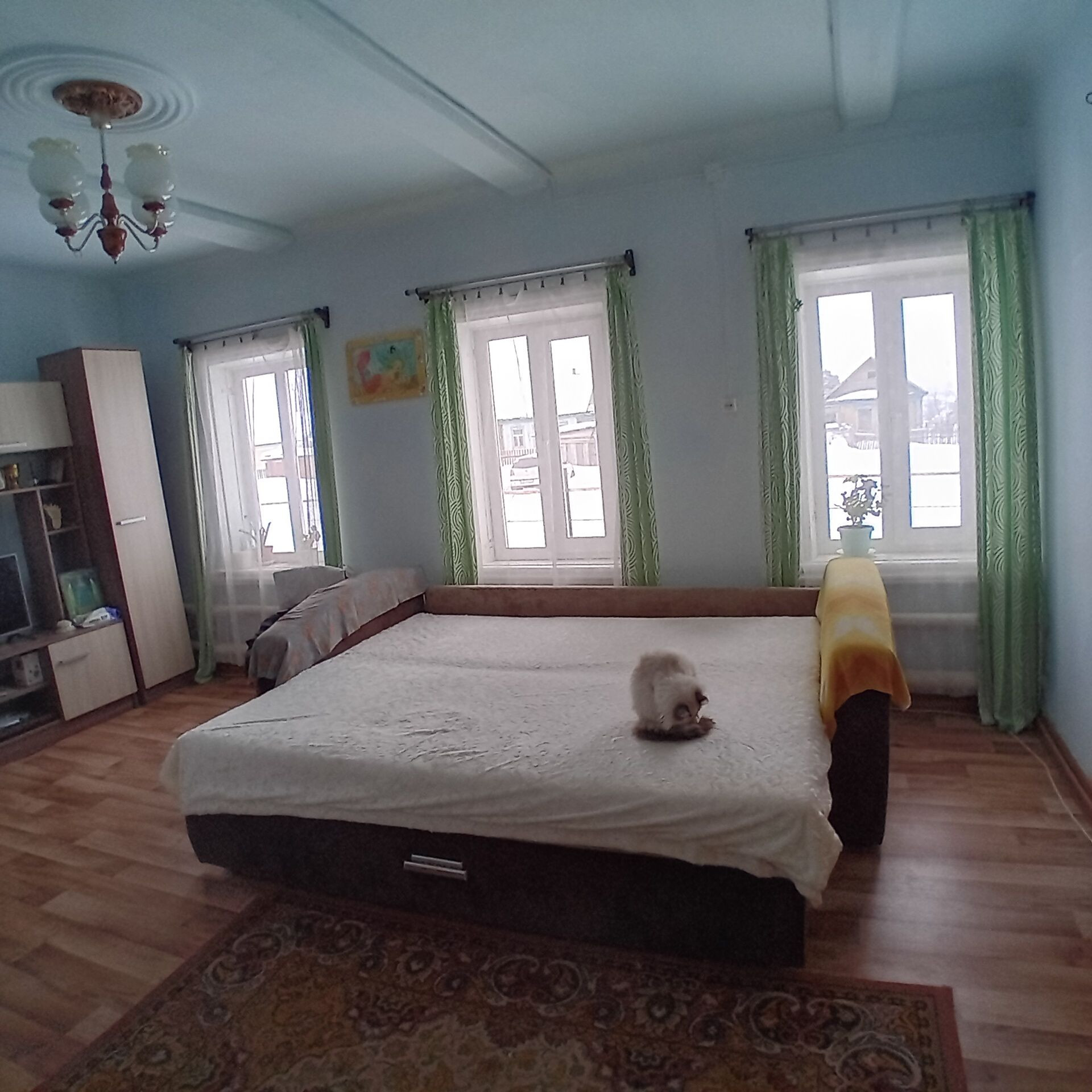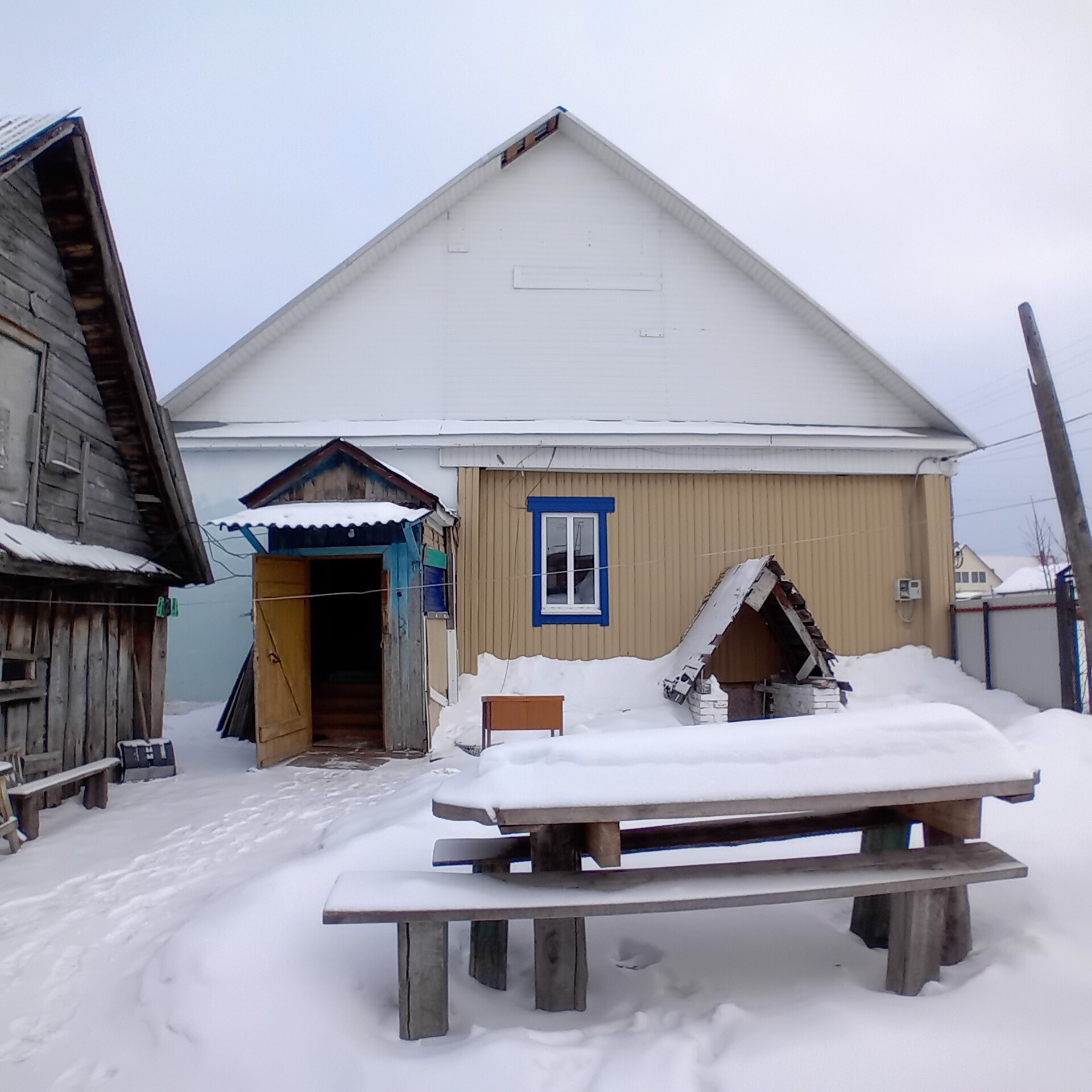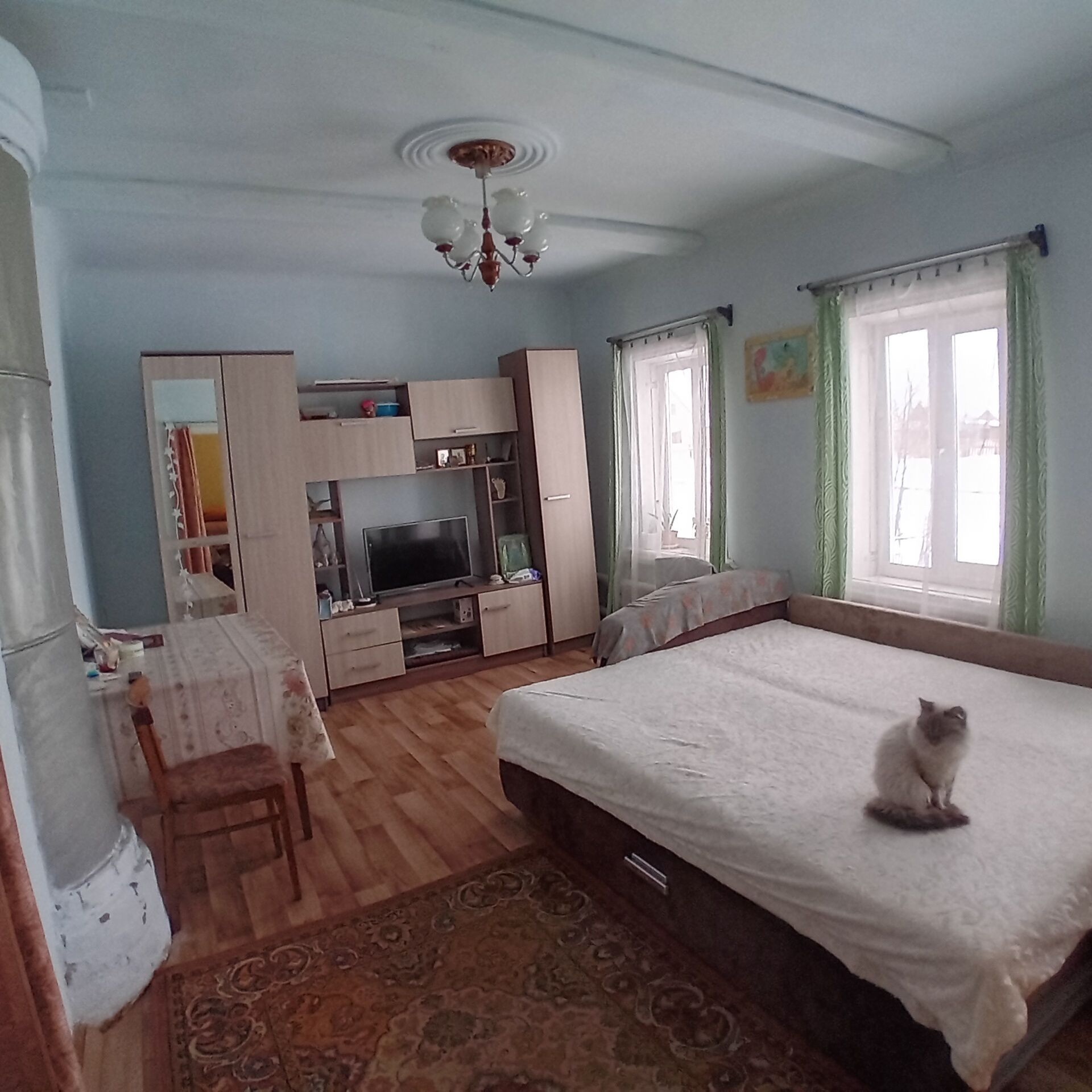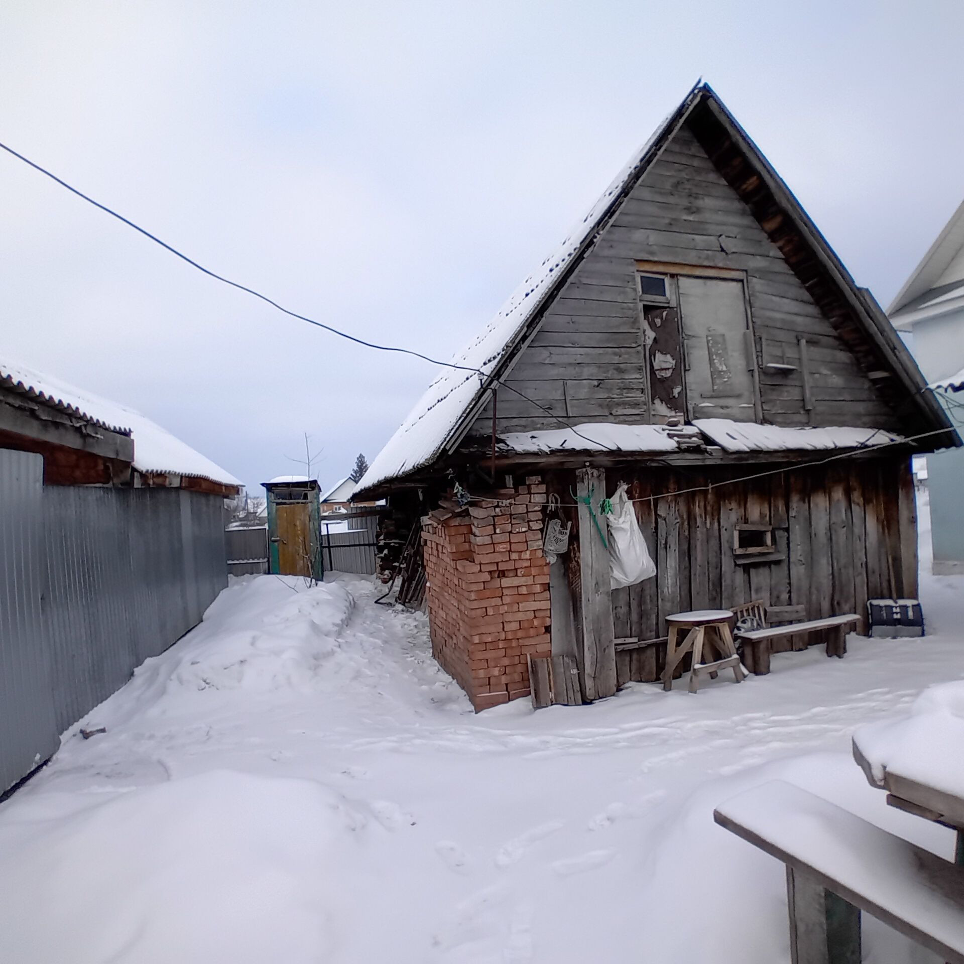 Продается жилой дом 1958г. постройки. Основная часть(зал и три спальни) построенны из бревна, пристрой ( кухня, прихожая, санузел) из  кирпича. Централизованное водоснабжение, водонагреватель. Отопление АГВ, есть рабочая печь. Косметический ремонт. Все окна пластиковые. На участке находятся: гараж, сарай, мастерская, дровник, баня, огород. Один взрослый собственник.