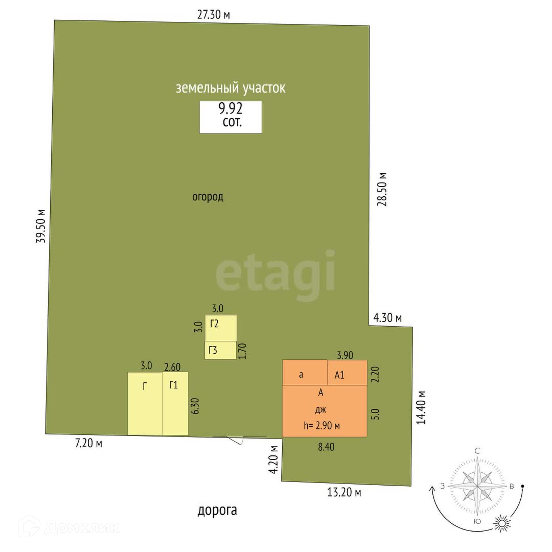 Площадь участка 9.9 сот.