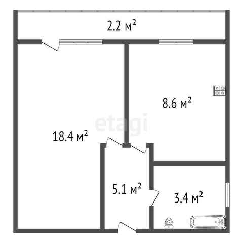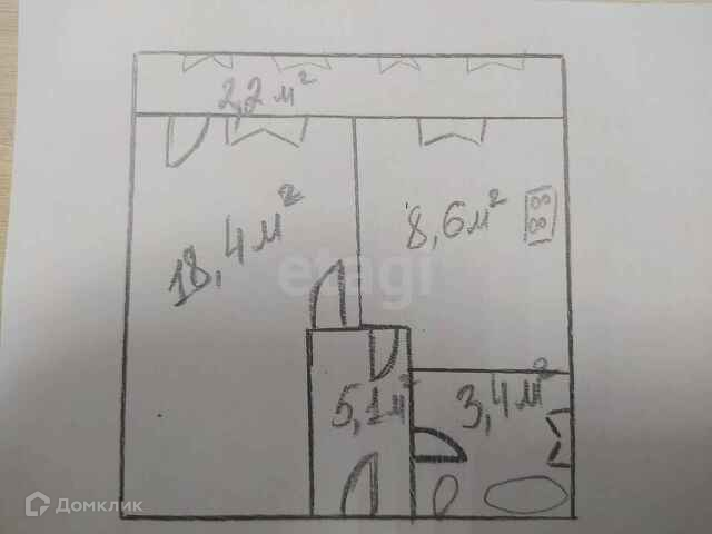 Общая площадь 37.7 м2