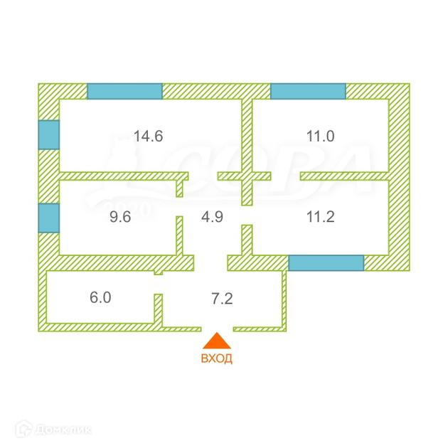 Общая площадь 64.5 м2