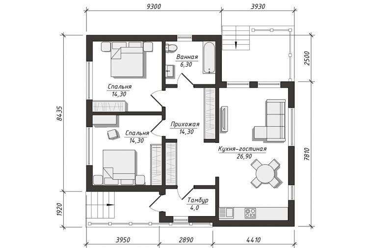 Общая площадь 96 м2