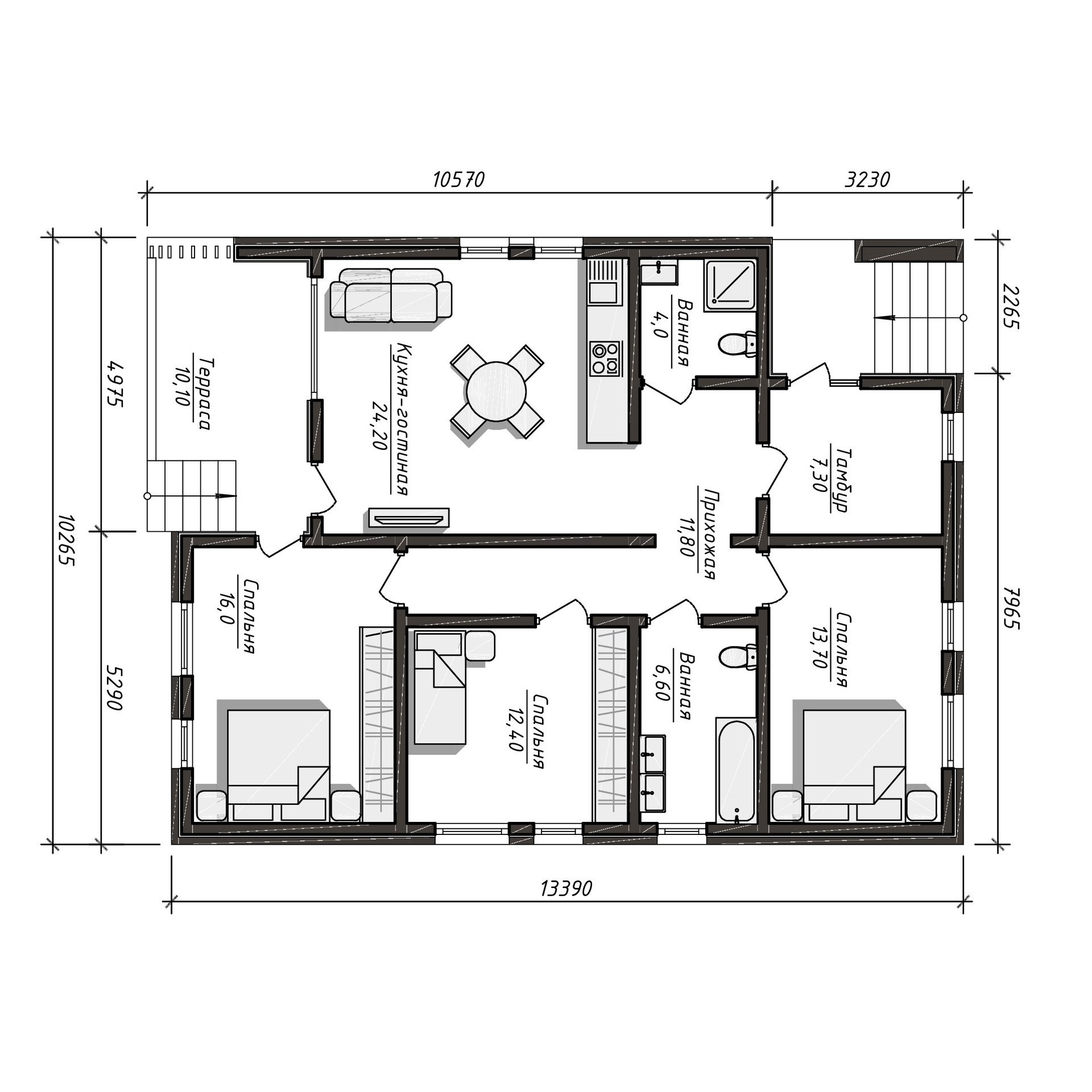Дом построен по типовому проекту, общая площадь дома 117 м2, внутренняя площадь дома 97 м2.