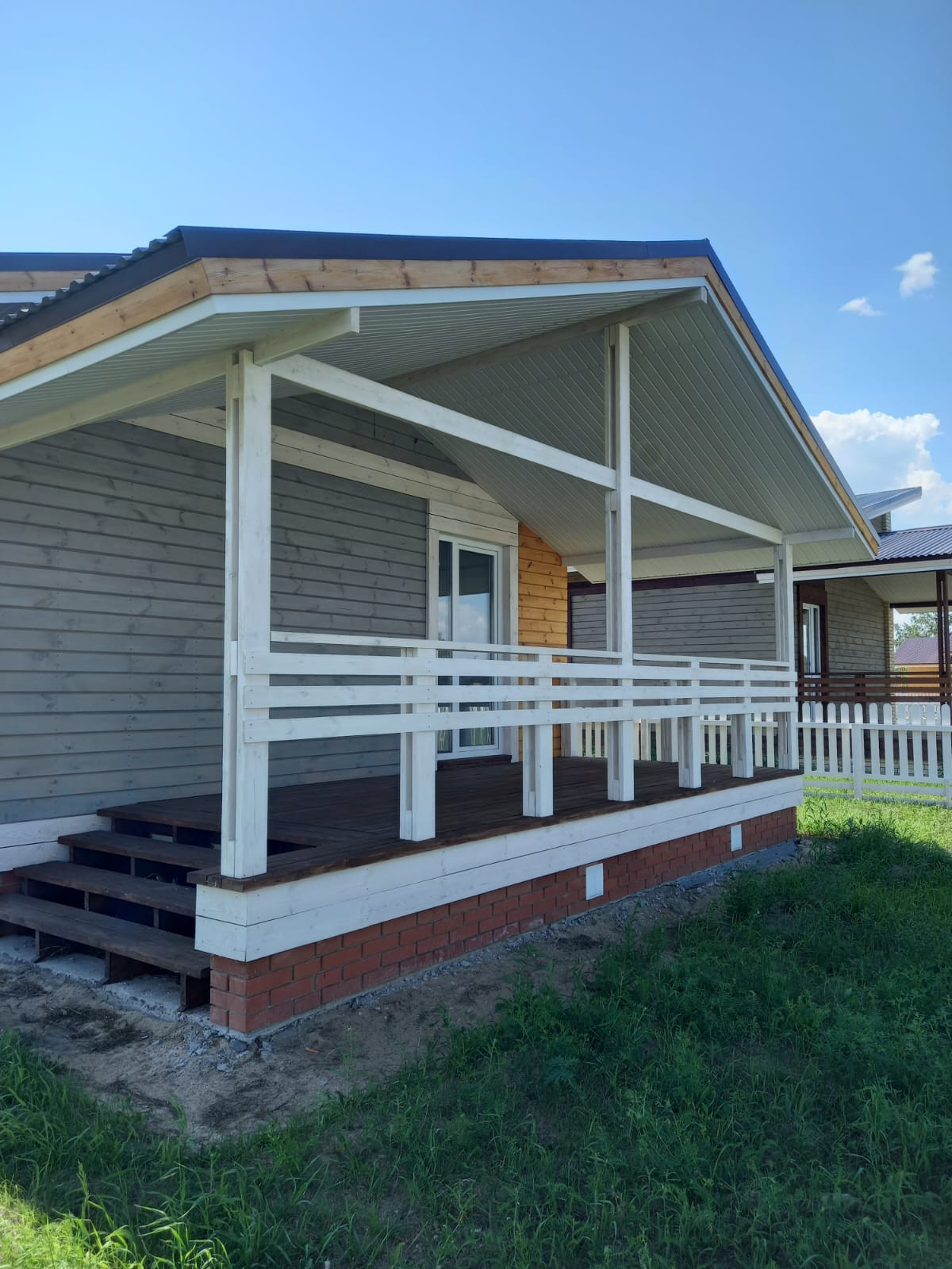 В доме: ленточный фундамент, проведена канализация, вода, электричество, газовый стояк подведен к дому,установлен септик, установлена система теплый пол и радиаторы отопления, стены зашиты гипсом. Внутренняя площадь дома составляет 48 м2. Из кухни-гостиной есть выход на просторную террасу, которая составляет 13 м2.