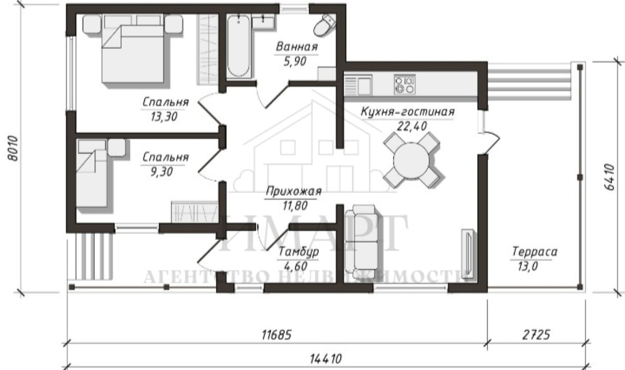 Общая площадь 83 м2