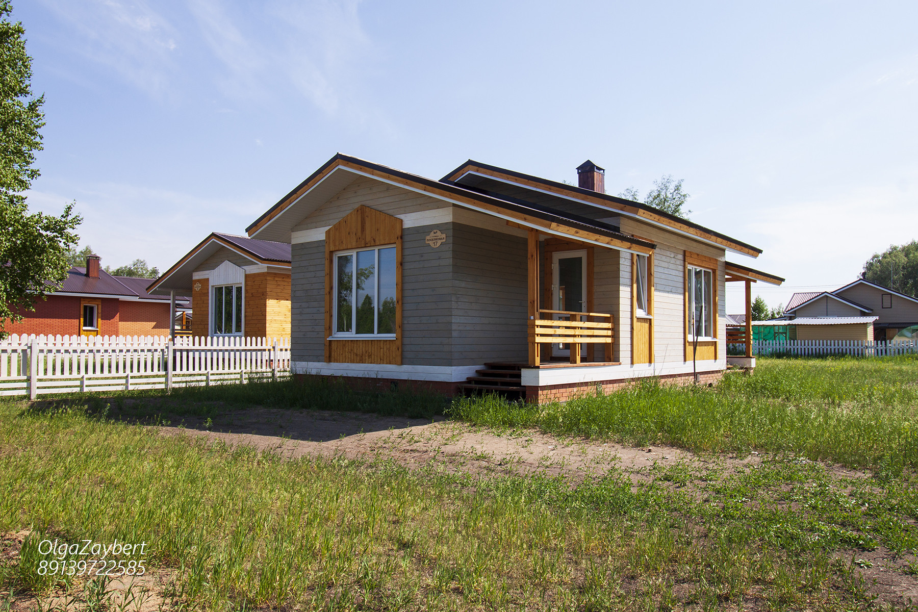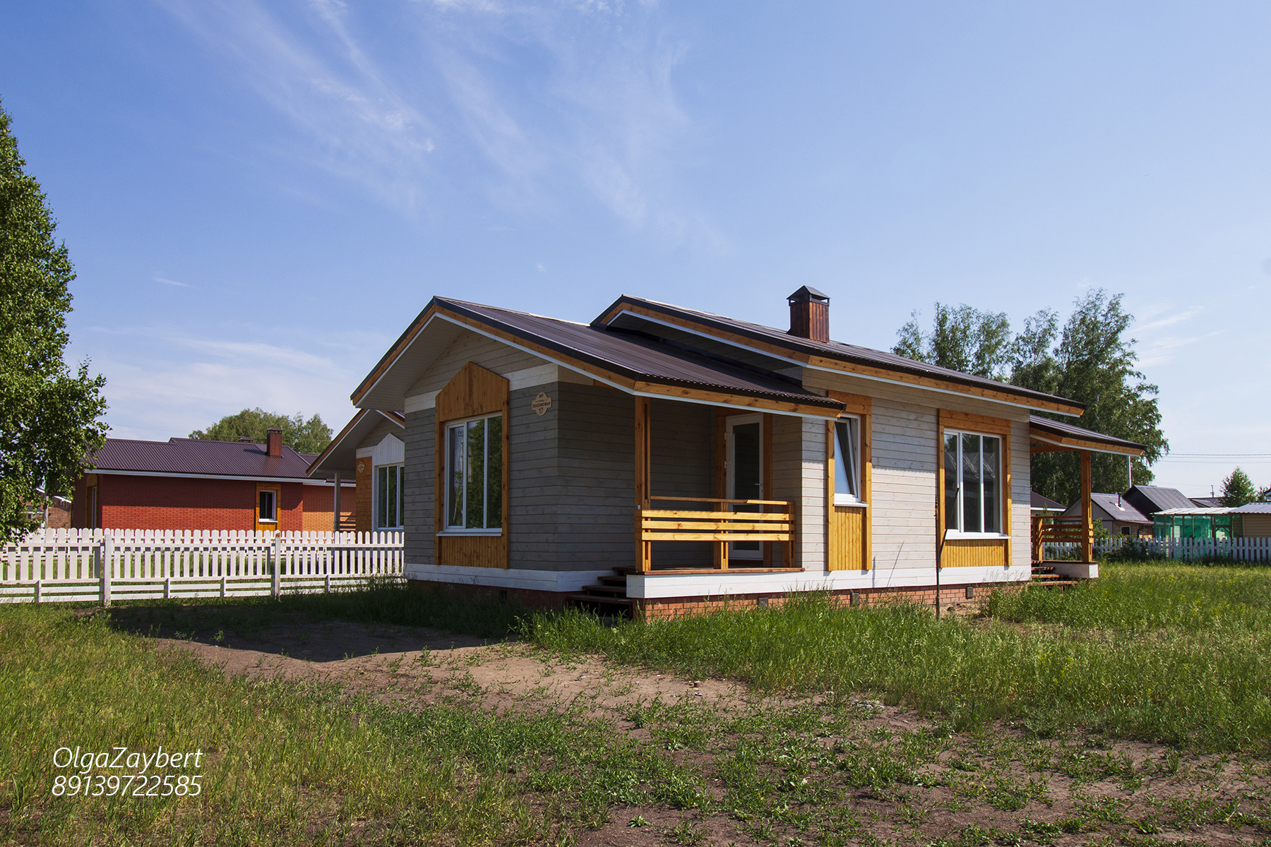 Перекрытия СИП панели 224мм, стены СИП панели 174 мм. На фасаде имитация бруса с пропиткой пинатекс классик на два слоя, кровля стропильная с профлистом, фундамент ленточный, армированный, крыльцо и терраса из массива сосны.