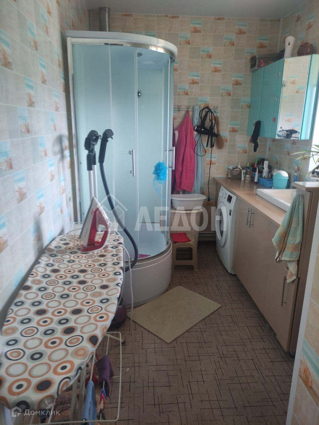 Во всем доме теплый пол, на полу линолеум.