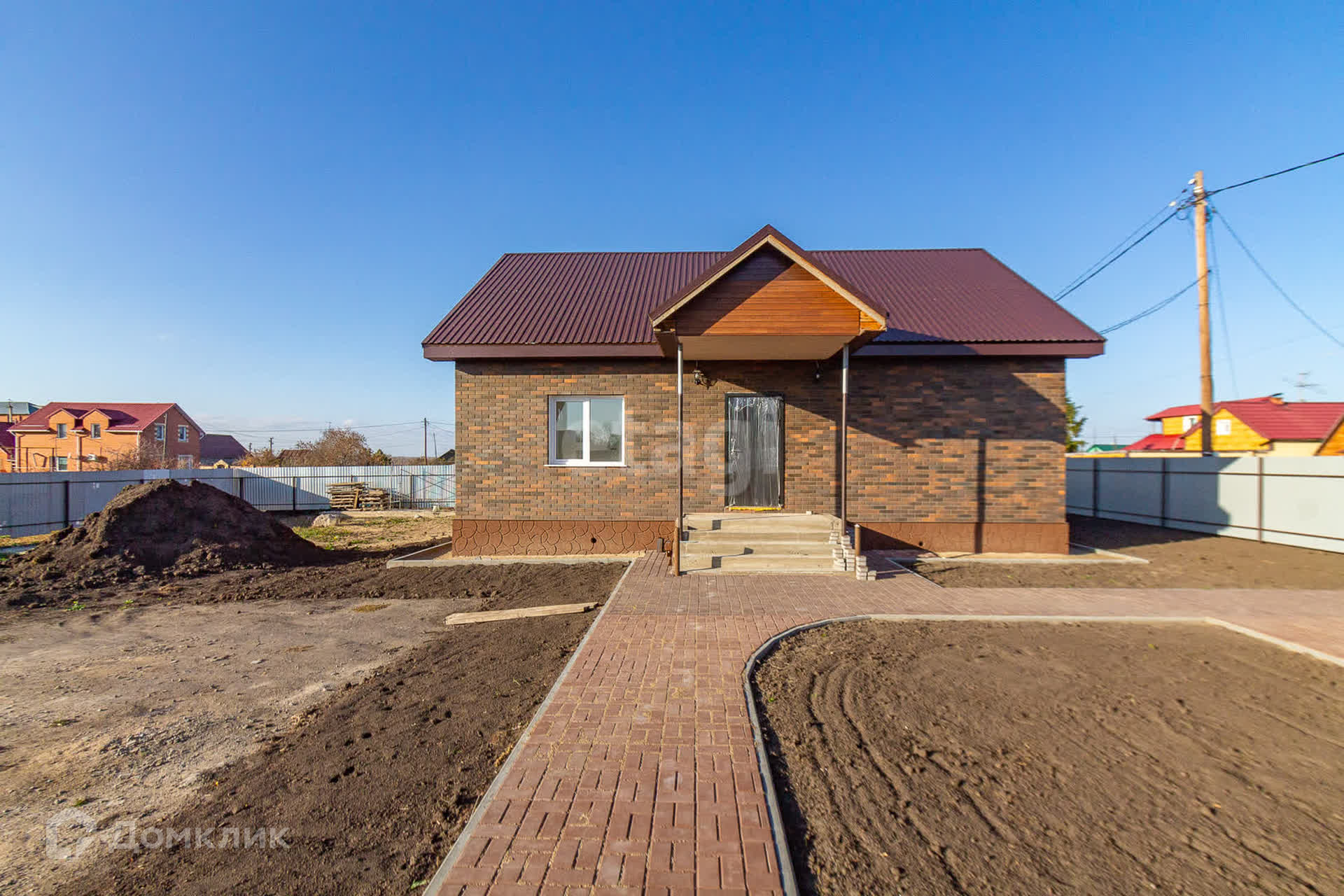 Дом полностью готов к эксплуатации. Стены отштукатурены и окрашены. Пол - черновая стяжка под плитку. Сам дом построен из крепкого и теплого материала -керамзитоблок. Обложен качественным кирпичем. Двор выложен из брусчатки Старый город толщиной 50мм. Площадь около 150м2.