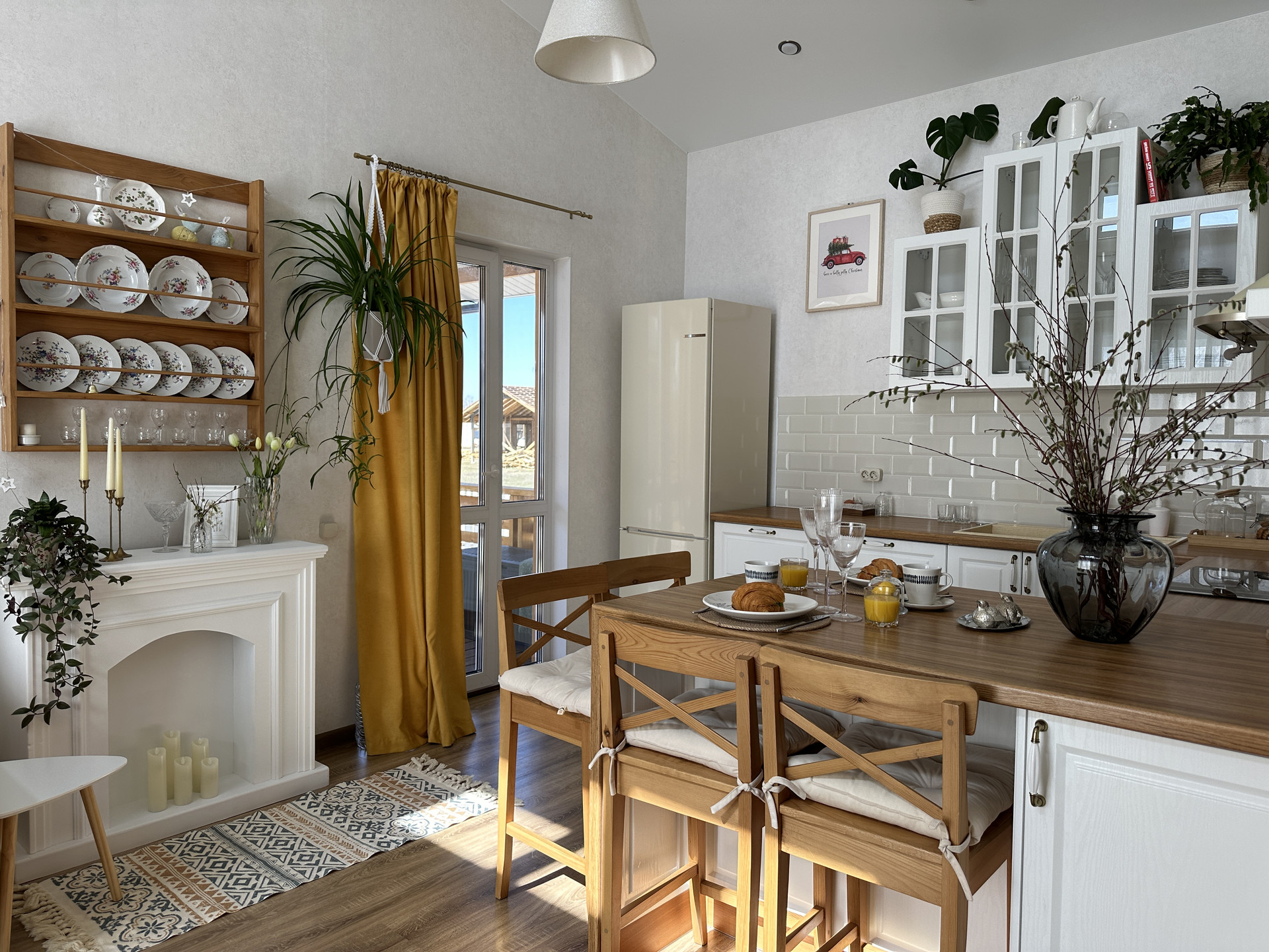 Площадь дома -  65, 9 м2, уютная спальня, просторная кухня-гостиная со вторым светом и выходом на большую террасу, санузел. В дом проведены и установлены все коммуникации (вода, электричество, отопление электрическое и газовое)
