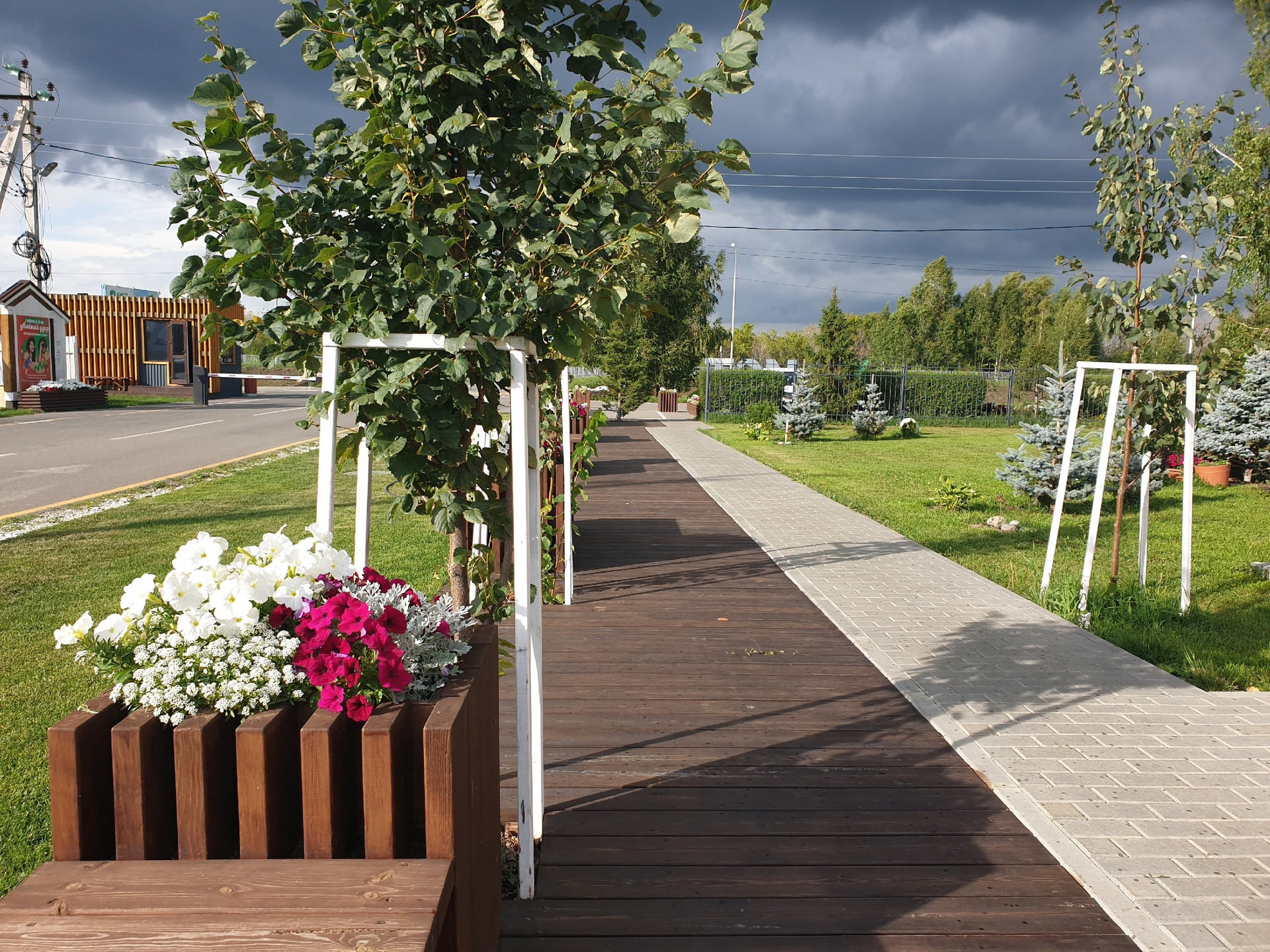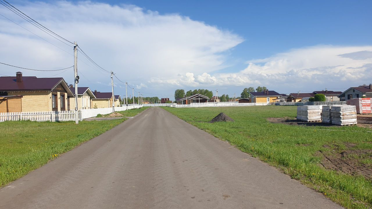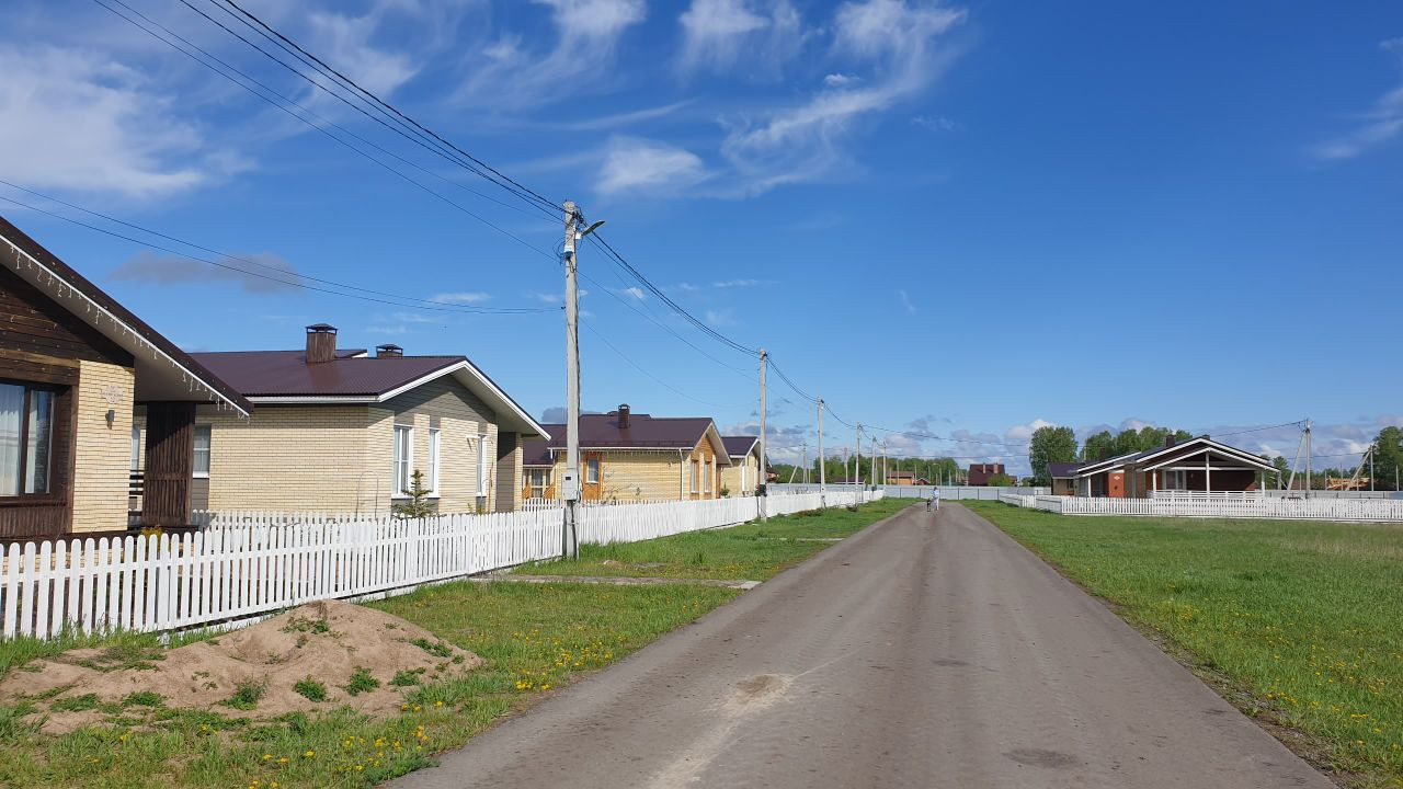 Поселок огорожен. КПП на въезде. Освещение по всему поселку. Главное: асфальт по всему поселку не зависимо от месторасположения земельного участка. Коммуникации до границы каждого участка (природный газ, вода, электричество, септик без откачки у дома, интернет) Ограждение забор белый. Калитка, ворота.