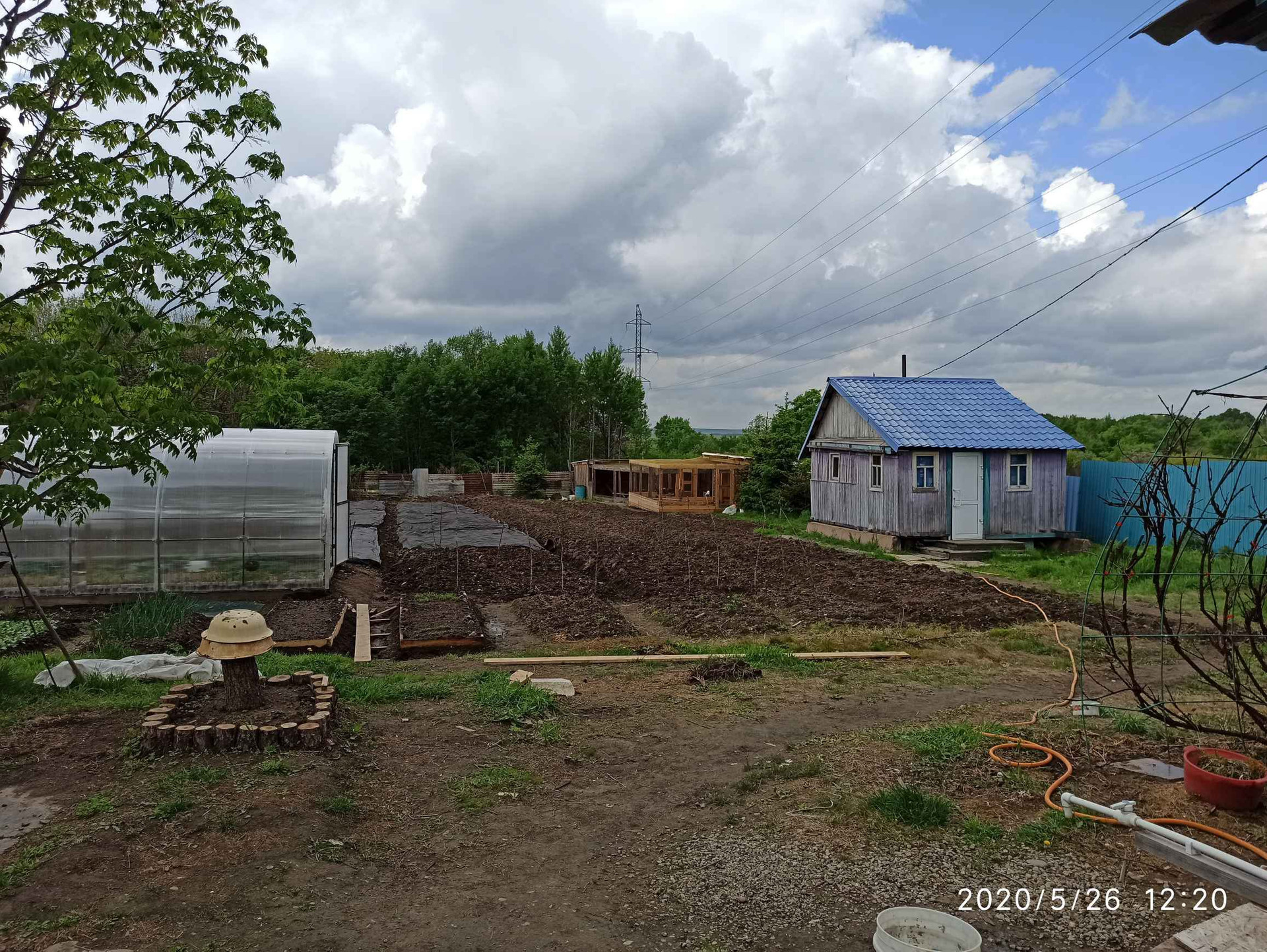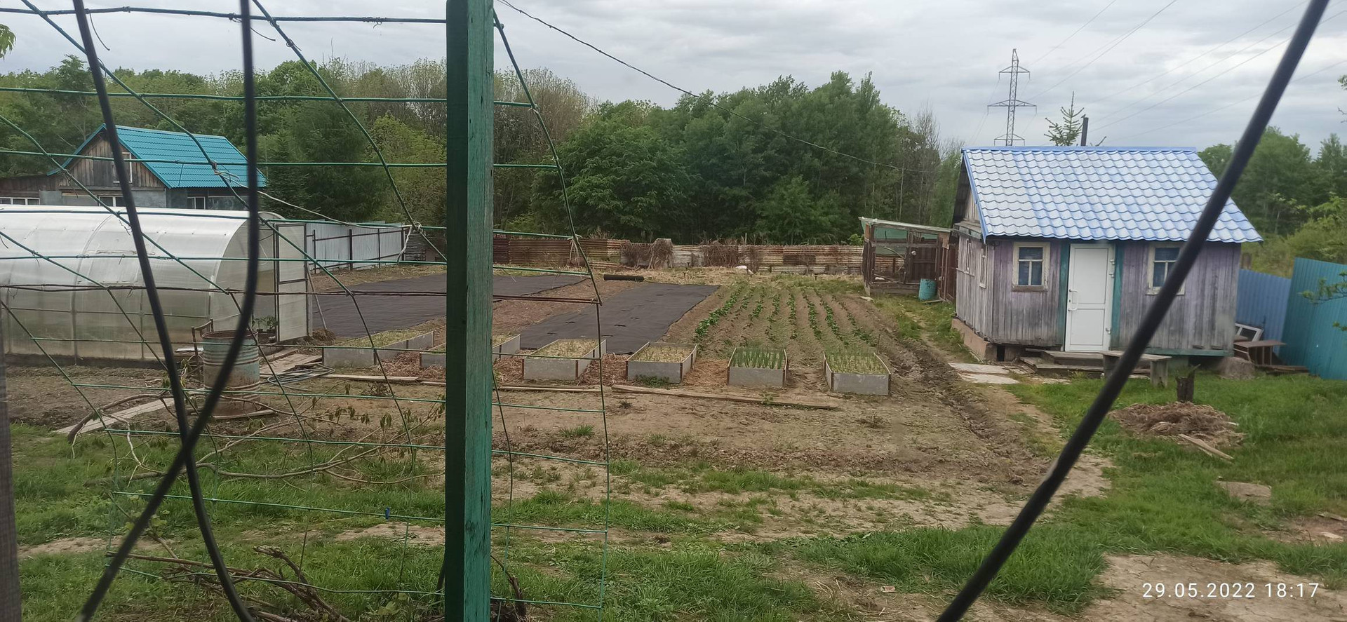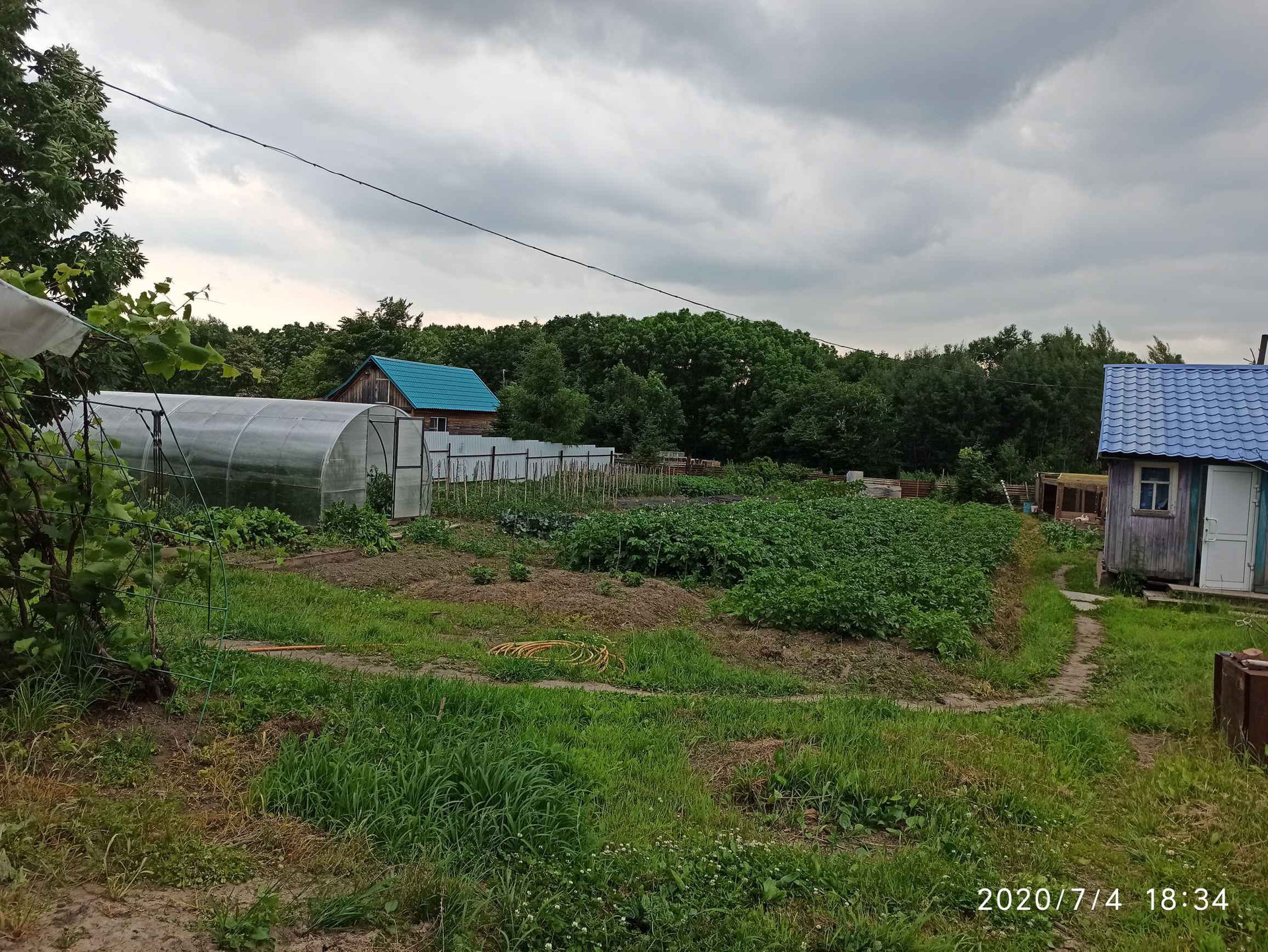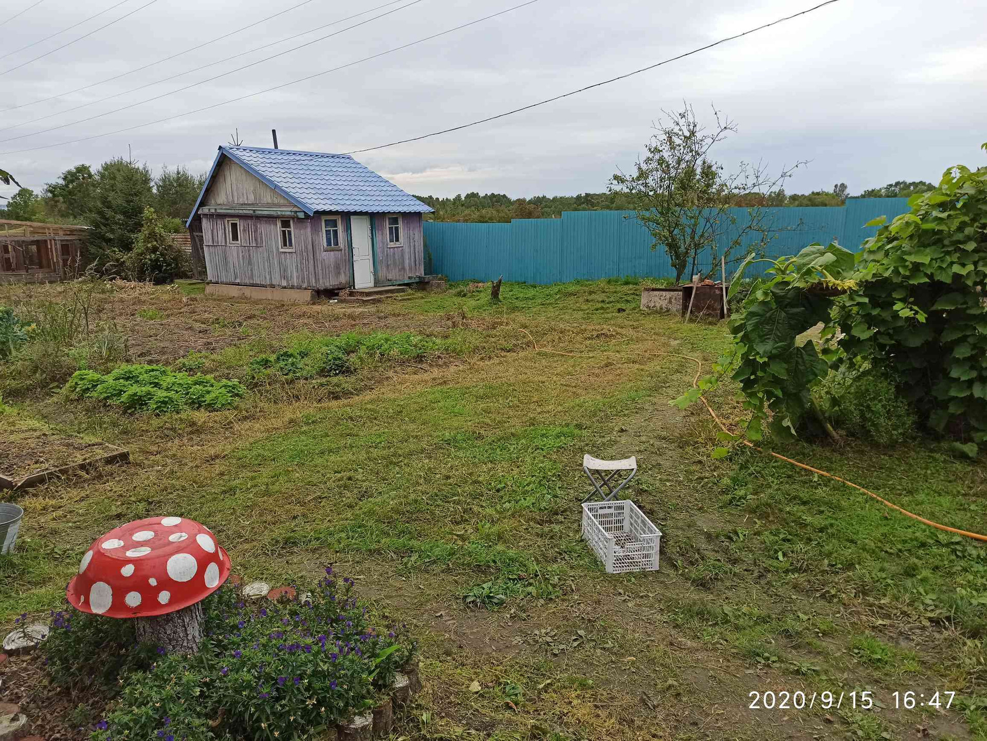 Насаждения: жимолость, облепиха, груша, виноград, смородина красная и черная, клубника, малина красная и черная, крыжовник, пихта, кедр, войлочная вишня, многолетние цветы. На участке установлена теплица из поликарбоната 10 на 3 метра.