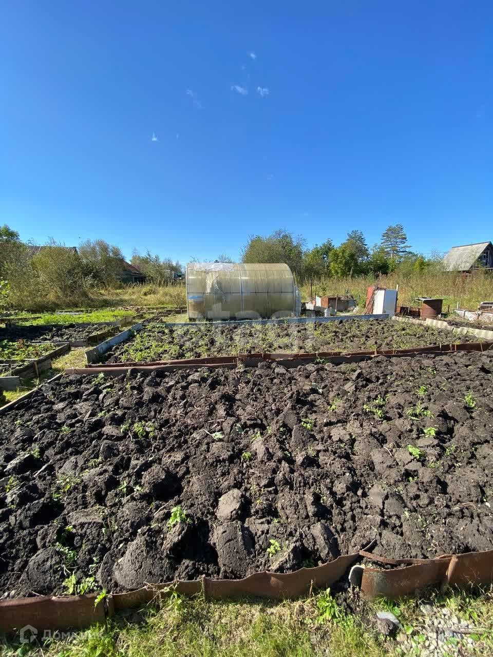 На зеленной территории есть теплица с плодородной почвой, посажена сортовая клубника -сочная, сладкая). Кусты смородины растет.