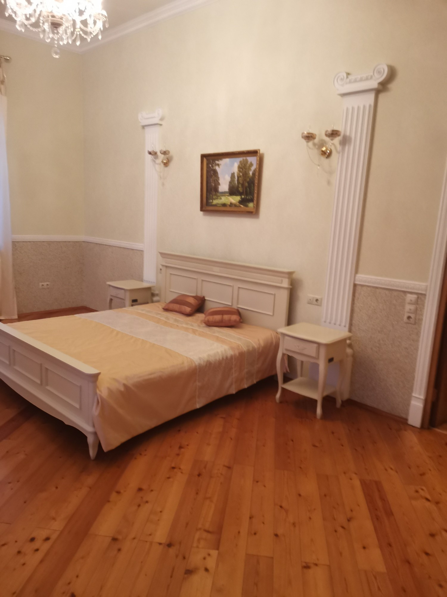 3 этаж: 1 спальня, мансарда, с/у, кухня, гостиная, 3 видовых балкона.