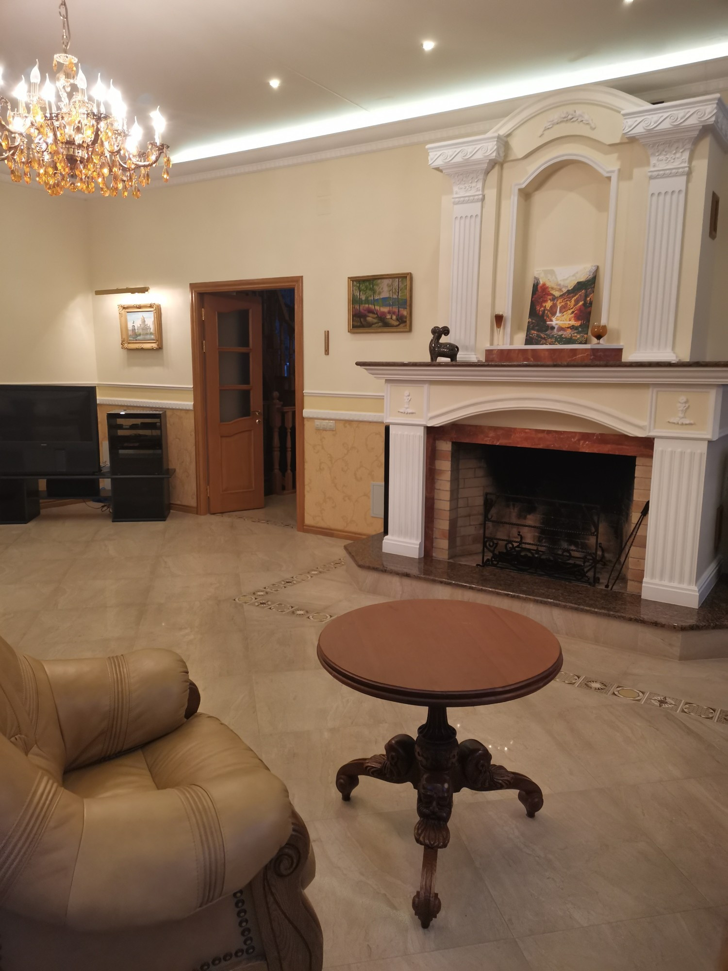 1 этаж: прихожая, большая кухня-столовая, просторная светлая гостиная с дровяным камином, гостевой с/у.