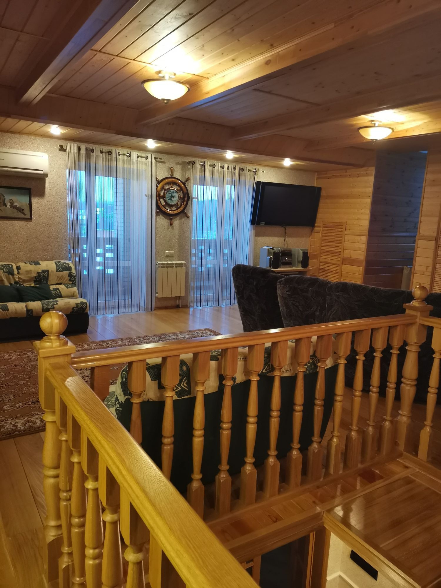 2 этаж: 1 большая спальня с балконом 5 окон, 3 гостевые спальни, с/у , кухня, ванная комната.