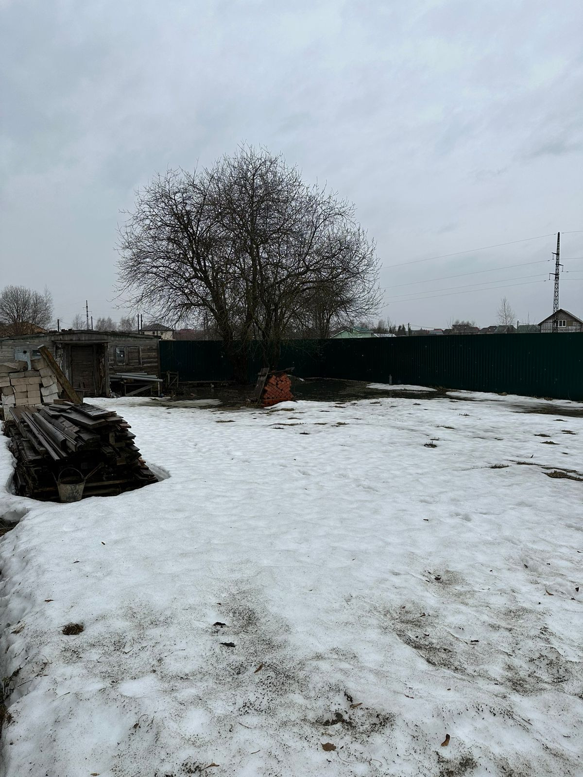 Участок правильной прямоугольной формы, со всех 4-х сторон забор из профнастила.