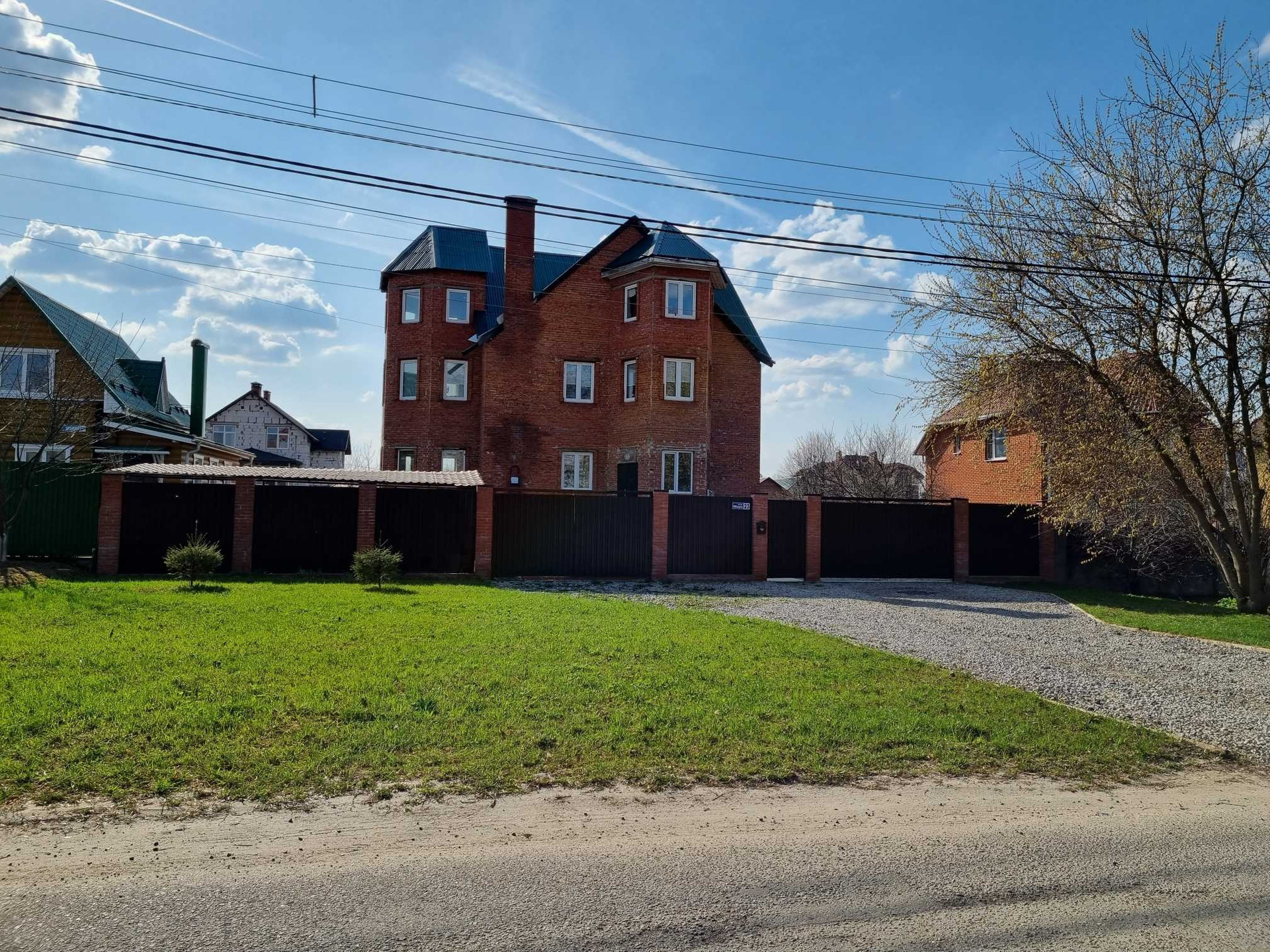 Огромная площадь перед воротами дома, где можно расположить много обычного автомобильного транспорта а так-же и спецтранспорта (минимум 7 большегрузных машин).