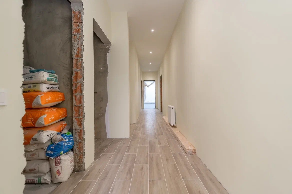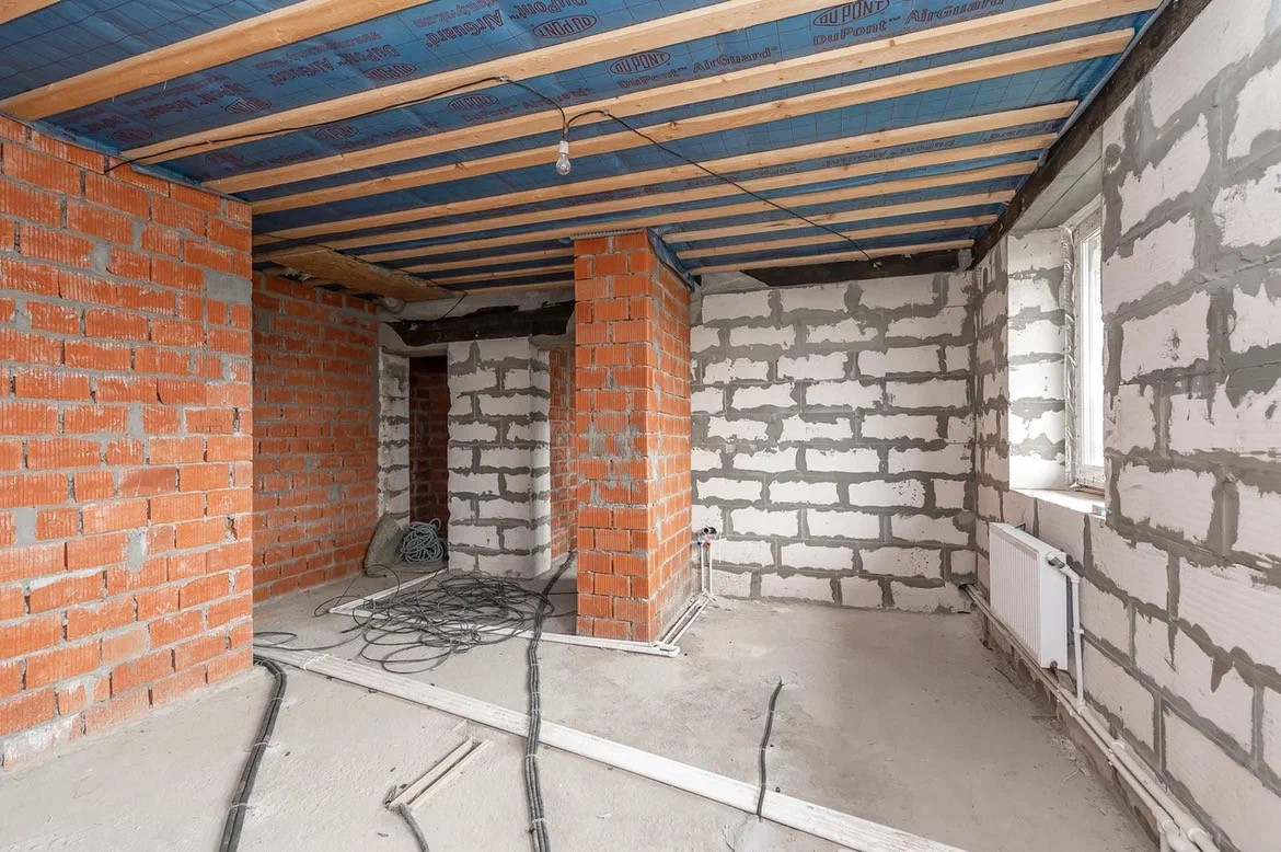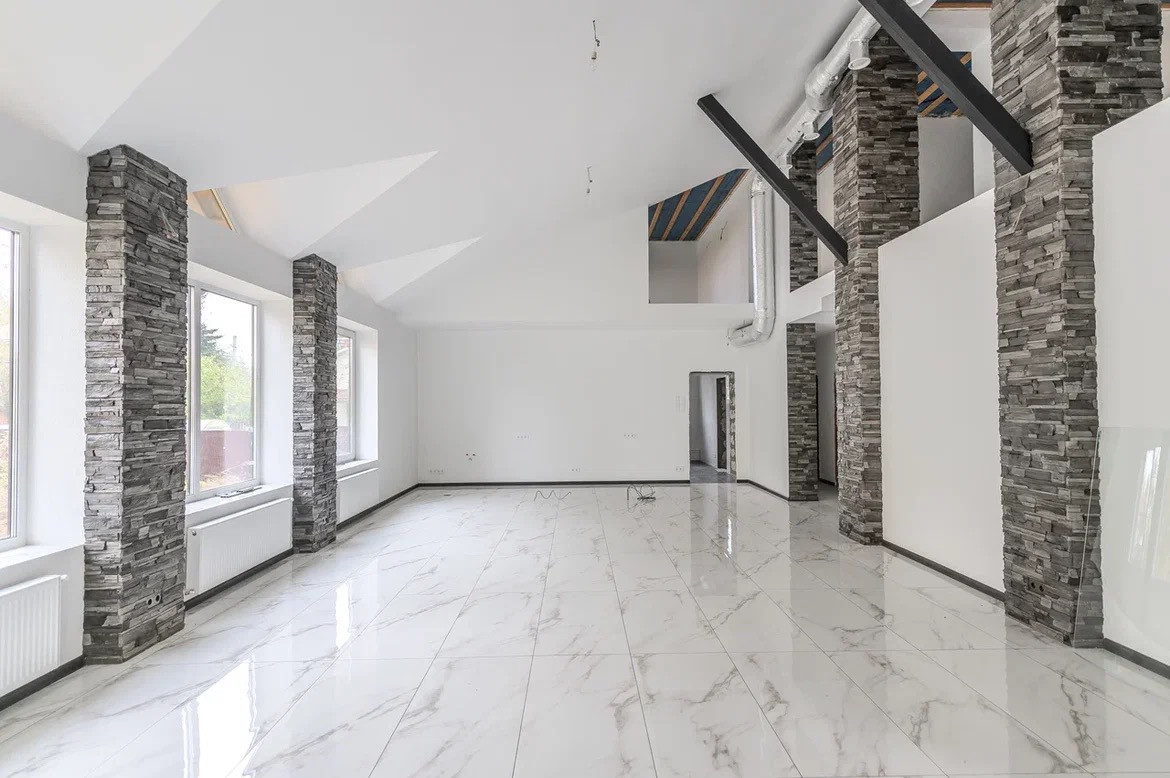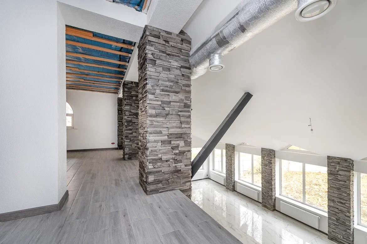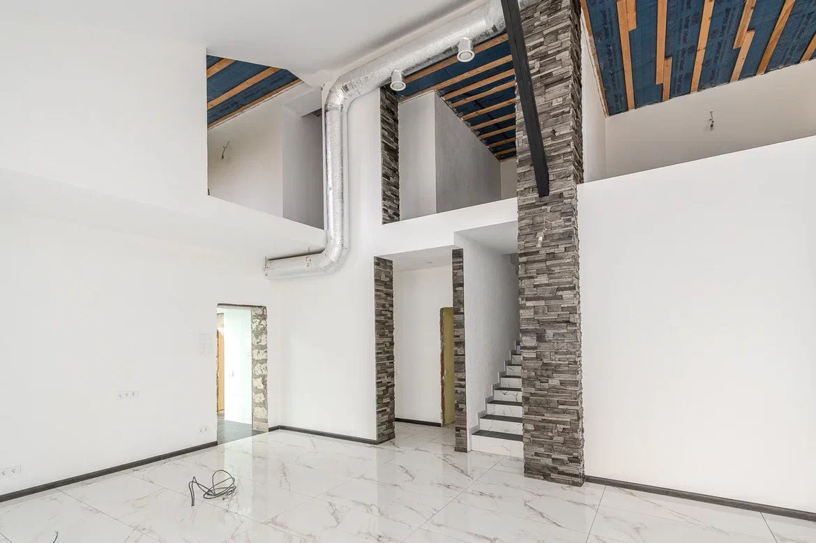 Требуется закончить отделку. В основном облицовка и несколько помещений на втором этаже. Дом выполнен из высококачественных материалов.