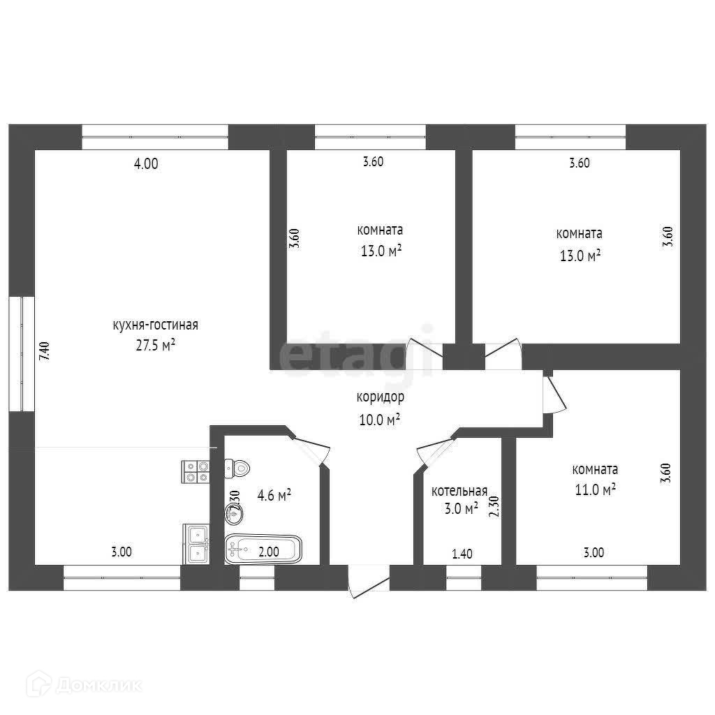 Так же есть готовый проект, который идеально подходит для семей с детьми (кухня-гостиная с выходом на задний двор, 3 спальни, санузел, котельная).