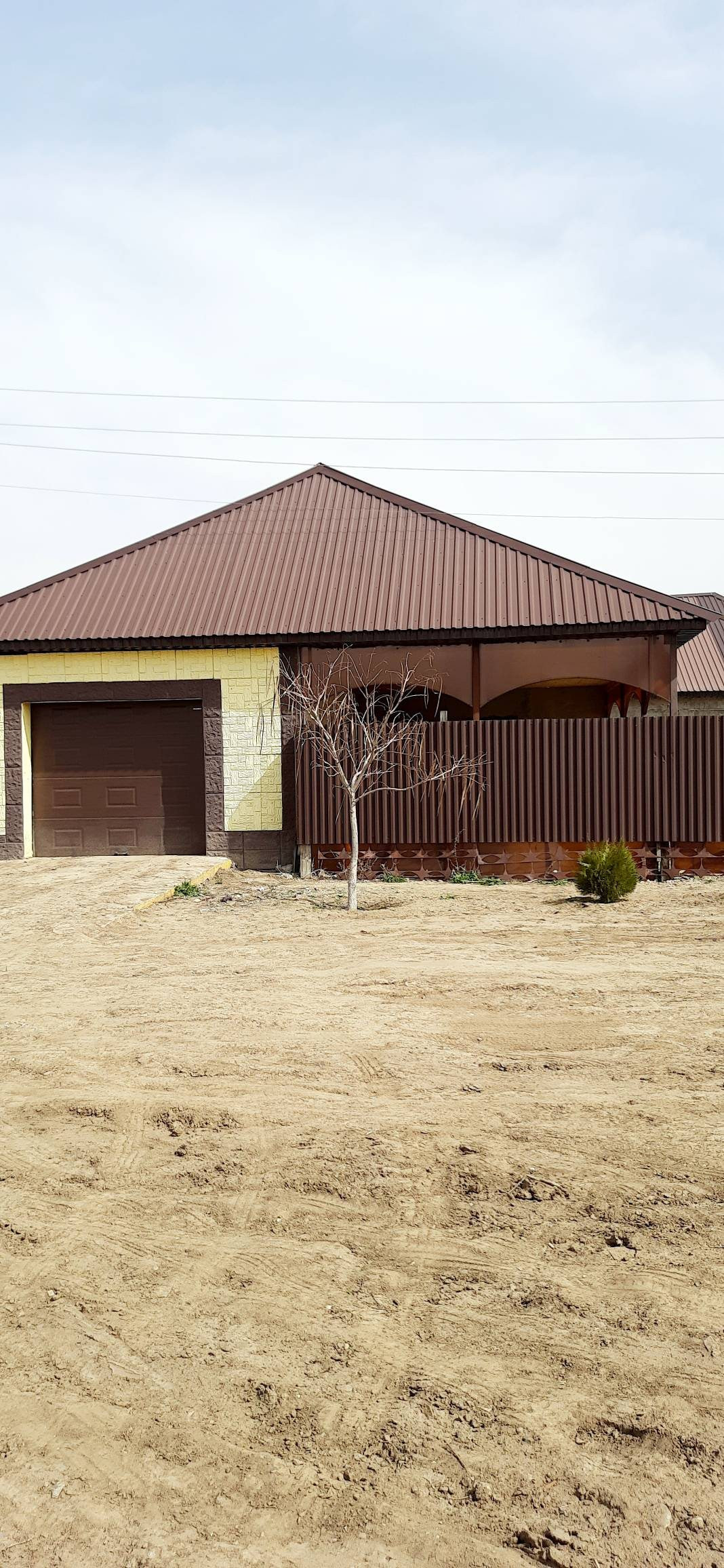Двор огорожен забором из профнастила с автоматическими воротами "Doorhan" Германия.