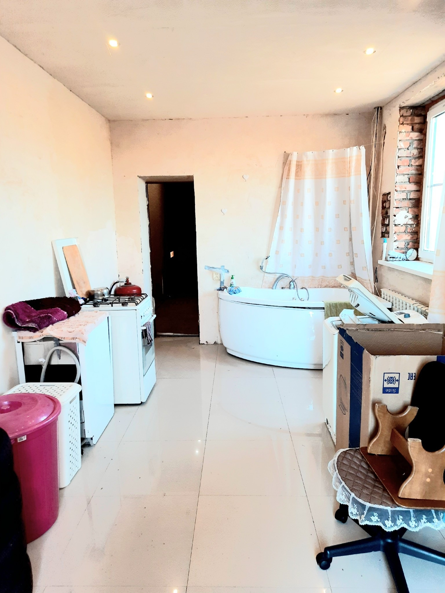 Первый этаж оштукатурен  и произведён косметический ремонт одной комнаты.