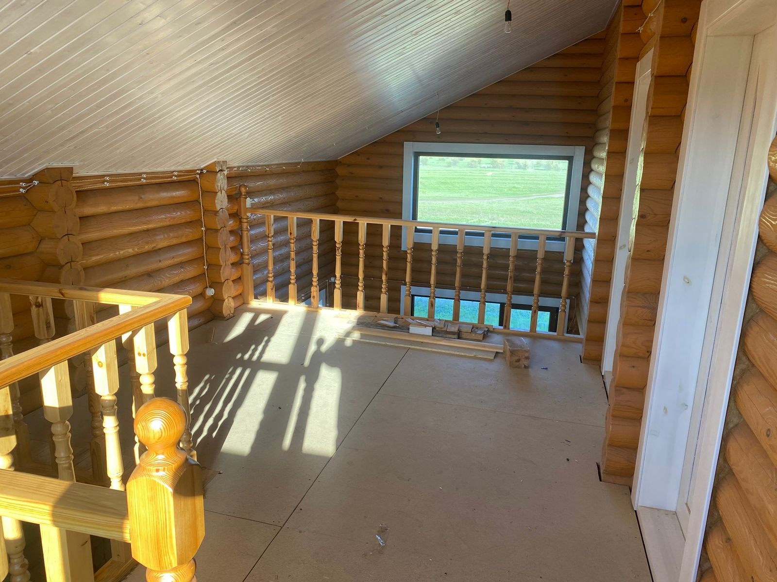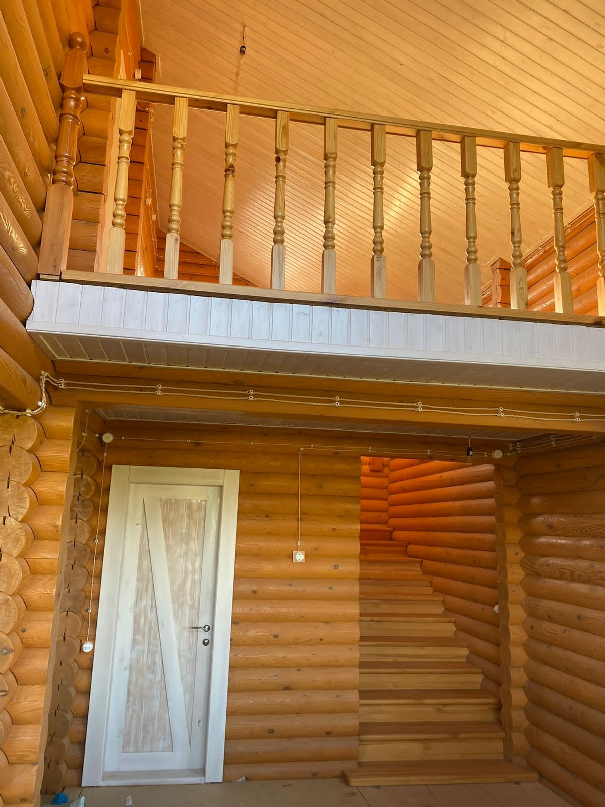 Первый этаж: прихожая, гостиная, туалет, гостевая спальня. Второй этаж: малая гостиная и две спальни. Готовность дома 90%.