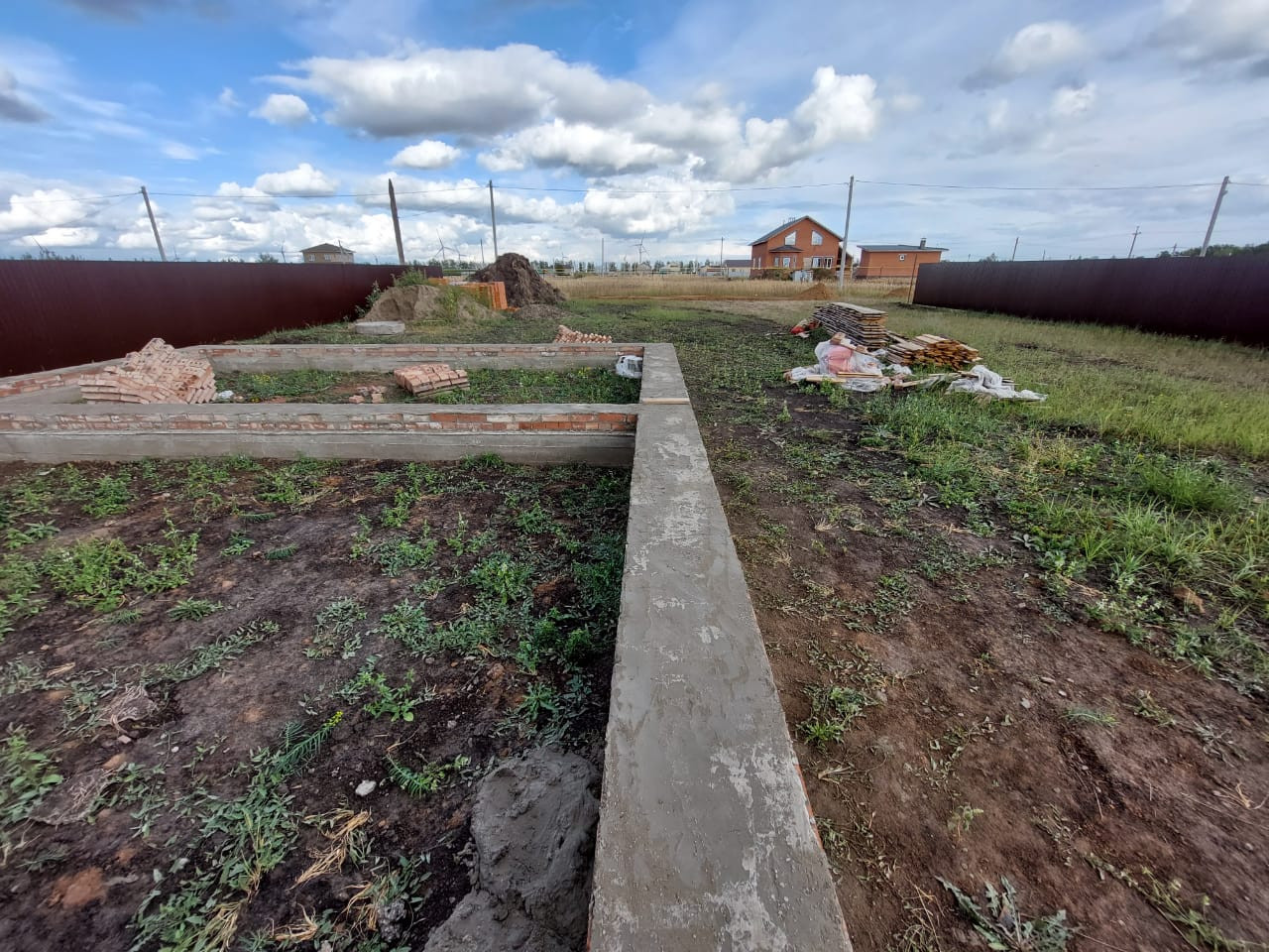 Участок 8 сот. ровный, на участке имеется: фундамент размером 10/9 , 7 пачек керамического блока, установлен забор из проф-листа высотой 2м . Выложены цокольные ряды. Так же имеется на участке песок и графмасса.