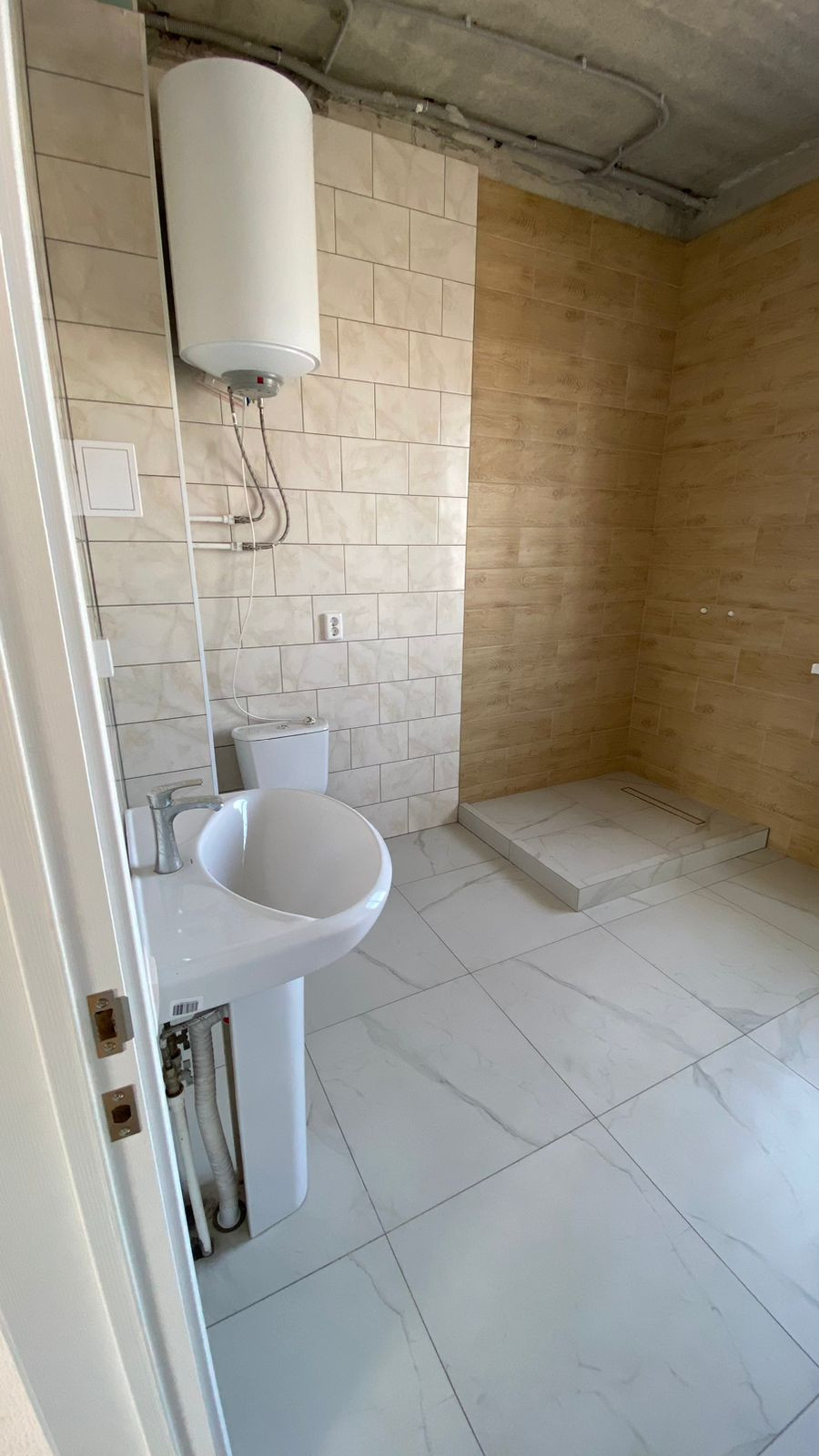 Пол: ламинат 33 класса, в санузле и тамбуре керамогранит