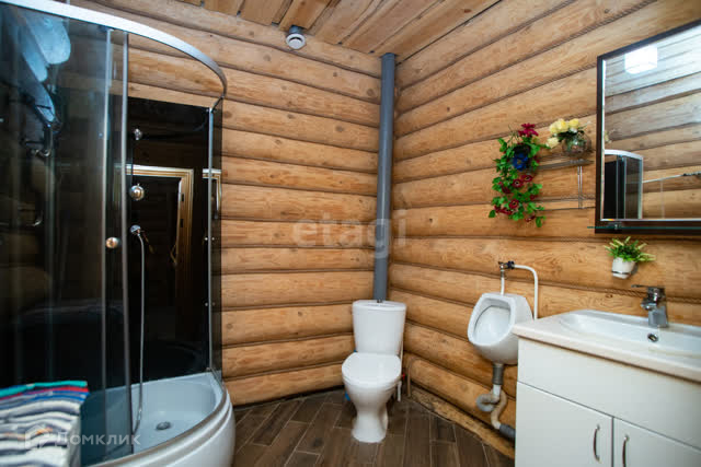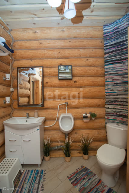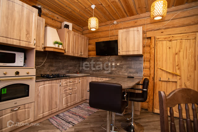 Двухэтажный дом 2015 года постройки. Внешняя и внутренняя отделка дома находятся в идеальном состоянии. Материал стен: бревно. Облицовка : под дерево. Фундамент: монолитный (глубина-1,5 метра, марка бетона М 400). Материал кровли: металлочерепица (утепление 210 мм). Материал окон: пластик. Вода: скважина с чистейшей водой. Электричество: заведено в дом. Канализация: выгребная яма. Отопление: газовое, на 1 этаже теплый пол.